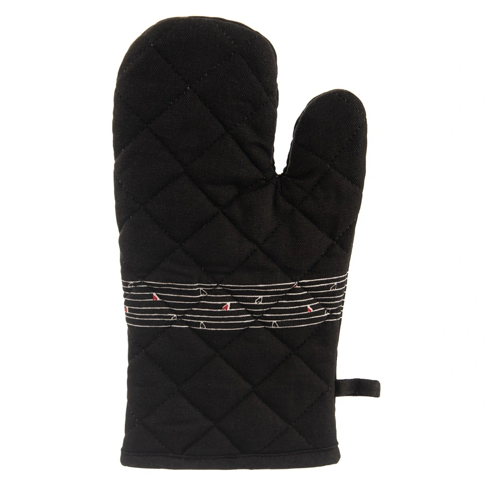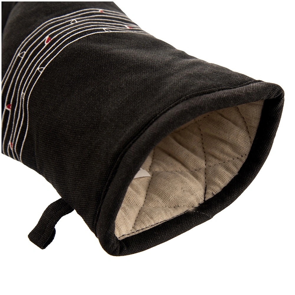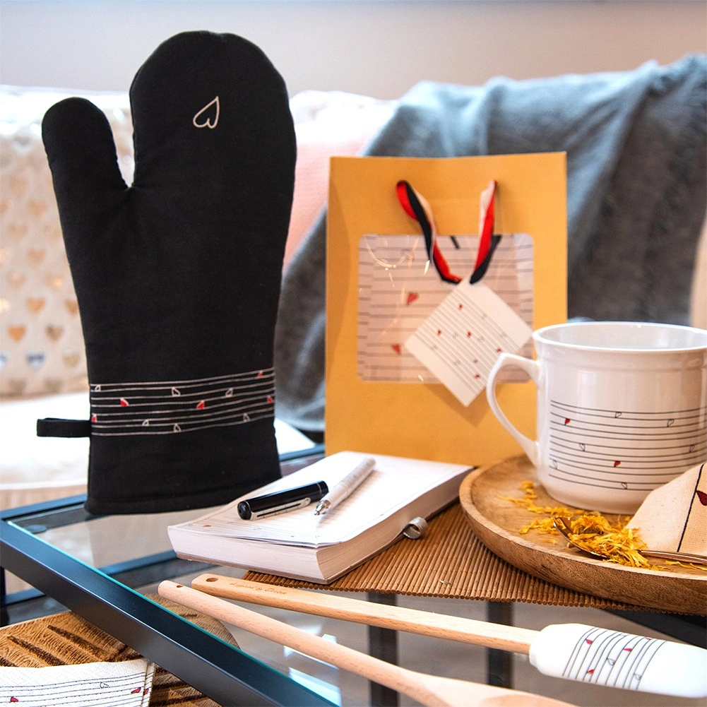 Tato odolná bavlněná rukavice je nepostradatelným pomocníkem při vaření i pečení. Díky kvalitnímu prošívání a měkké výplni poskytuje spolehlivou tepelnou ochranu a příjemně sedí na ruce. Elegantní černý design s decentním motivem srdíček se hodí do každé kuchyně.