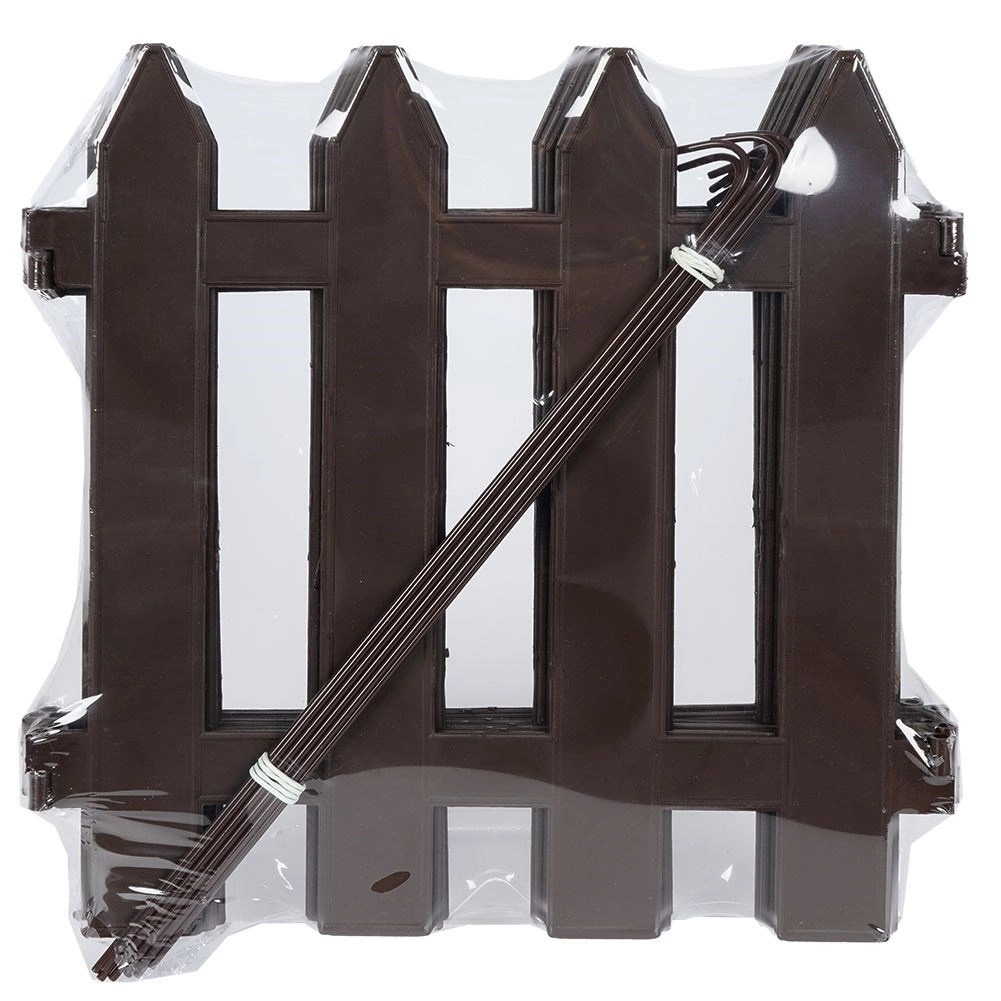 Dekorativní hnědý zahradní plůtek o rozměru 30 × 30 cm v sadě 10 ks vytváří elegantní obrubu záhonů a trávníků. Snadno se instaluje, je odolný vůči povětrnostním vlivům, modulární a rozšiřitelný a díky pevné plastové konstrukci s kovovými hroty vydrží dlouhá léta. Celková délka po sestavení je 300 cm, ideální pro rychlé a estetické vymezení ploch na zahradě.