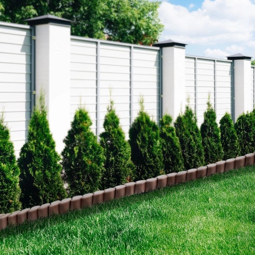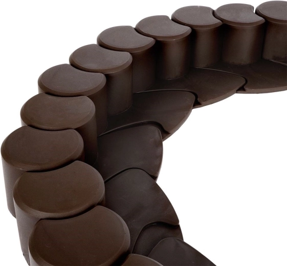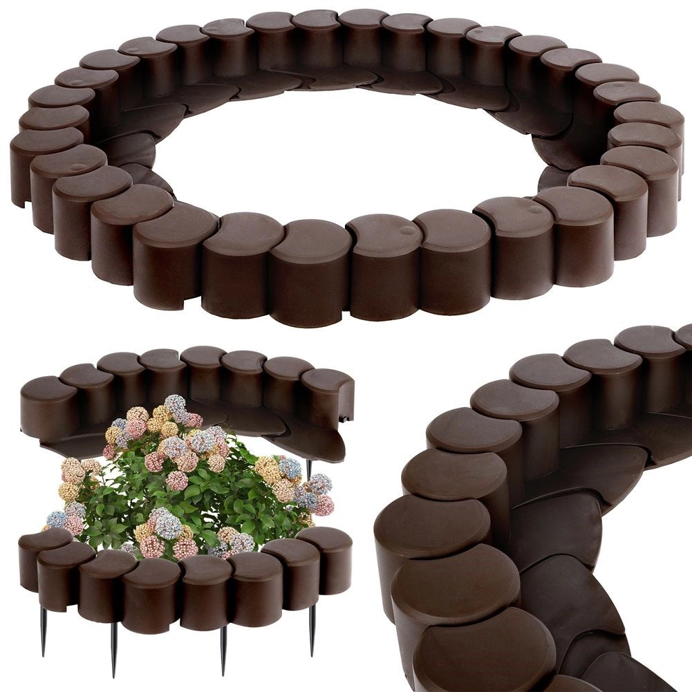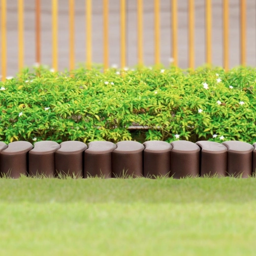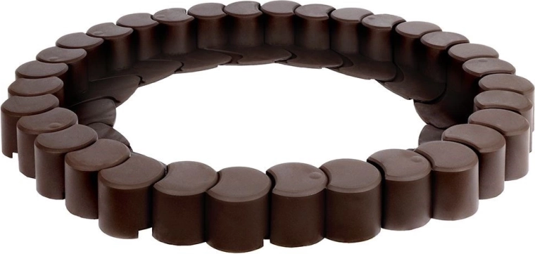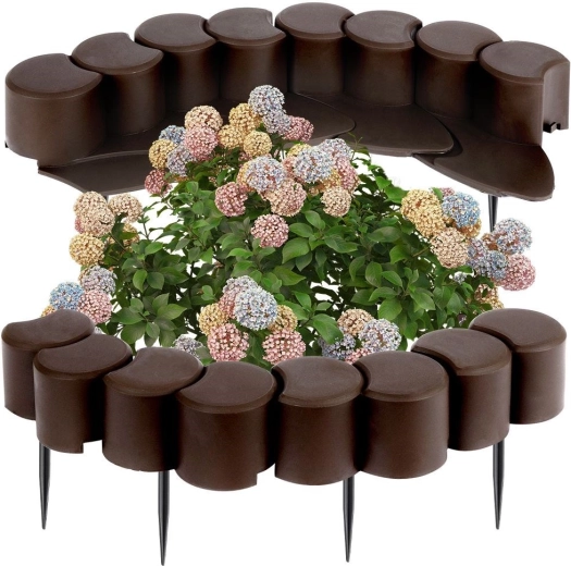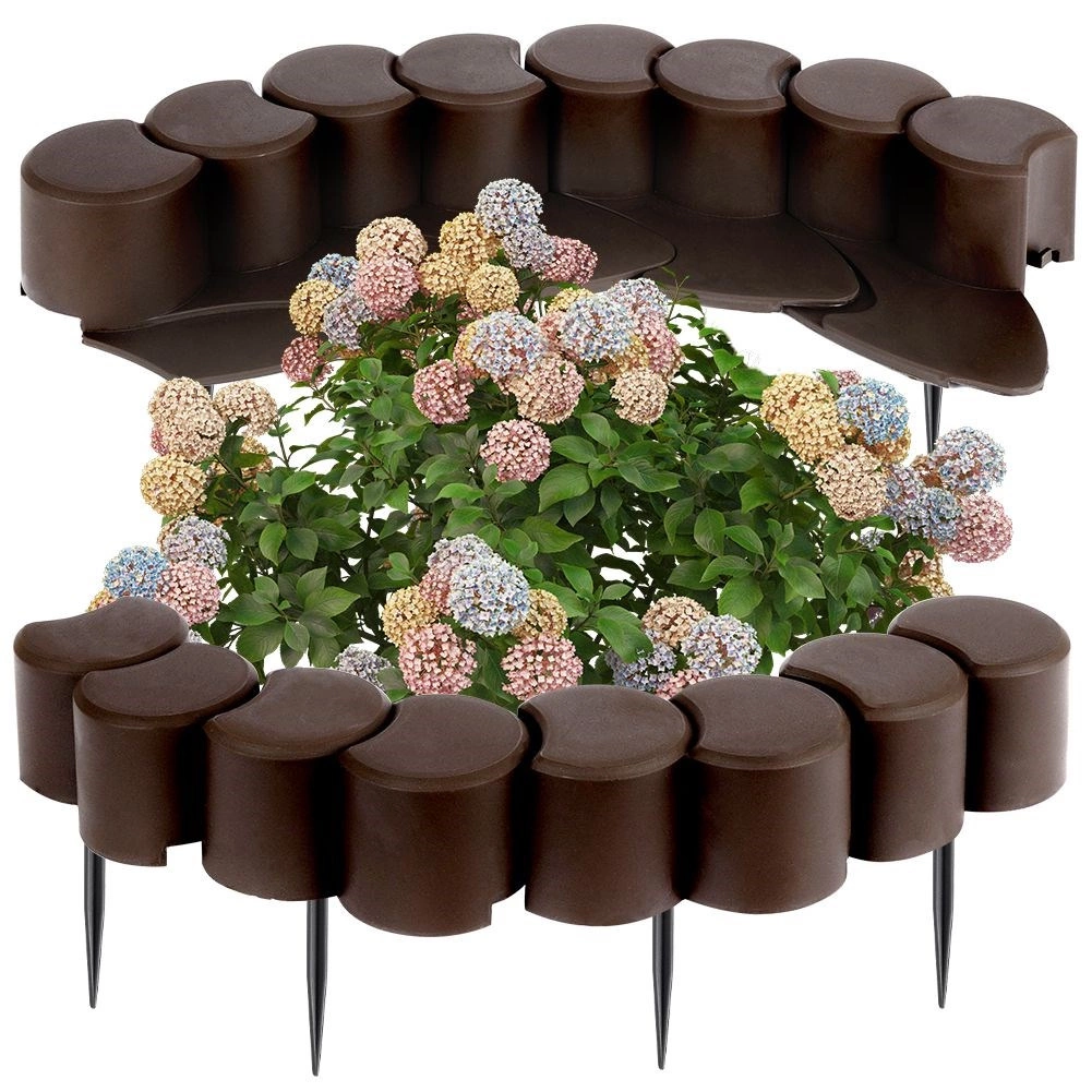 Dekorativní zahradní palisáda v hnědé barvě s celkovou délkou 4,1 m tvořená 32 moduly je ideální pro oddělení trávníku a záhonů. Nabízí snadnou montáž, flexibilní tvarování do oblouků i kruhů a odolnost vůči mrazu, UV záření i dešti. Praktický nájezd pro sekačku usnadňuje údržbu okrajů a integrované vodiče pro kabel či hadici skryjí instalace.