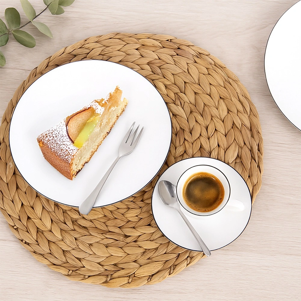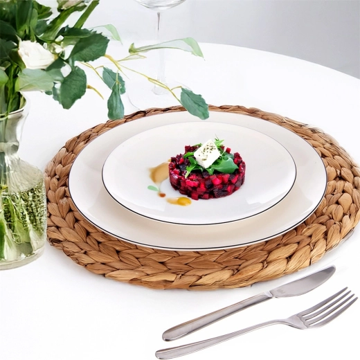 Bílá porcelána s tenkým černým okrajem dodává stolování elegantní a moderní vzhled, který snadno zkombinujete s ostatními kusy nádobí.