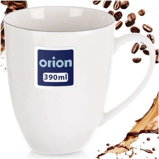 Elegantní bílý porcelánový hrnek DECORA o objemu 390 ml je ideální pro kávu, čaj i kakao. Má klasický design s tenkou černou linkou, pohodlné ucho a je vhodný do myčky i mikrovlnky – perfektní pro každodenní použití doma i v kanceláři.