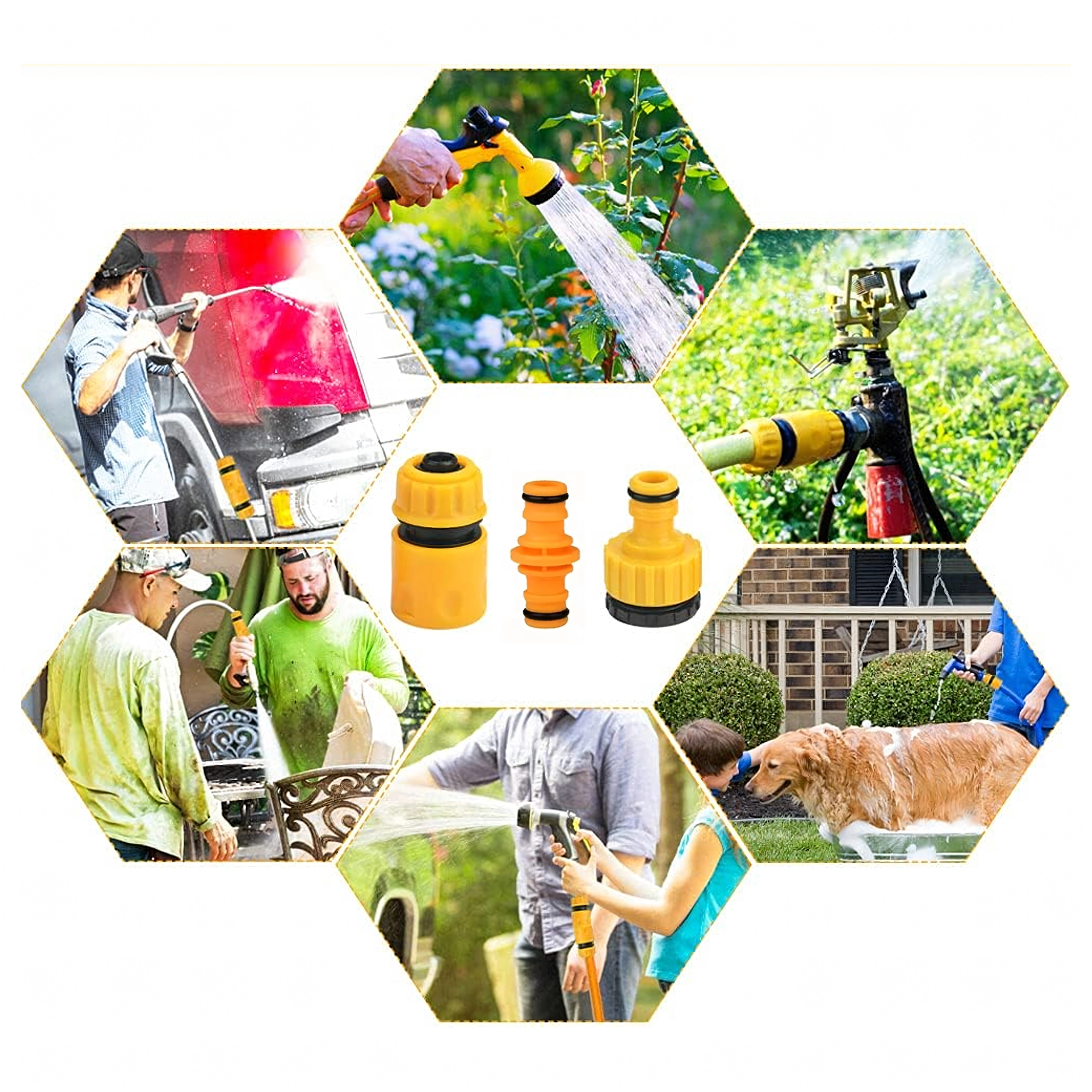 Tato praktická sada rychlospojek a adaptérů pro zahradní hadice vám umožní snadno propojit hadici s venkovním kohoutkem, spojit dvě hadice dohromady nebo bleskově měnit trysky a postřikovače. Kompatibilita se standardními rozměry 1/2" a 3/4" pokrývá většinu domácích instalací.