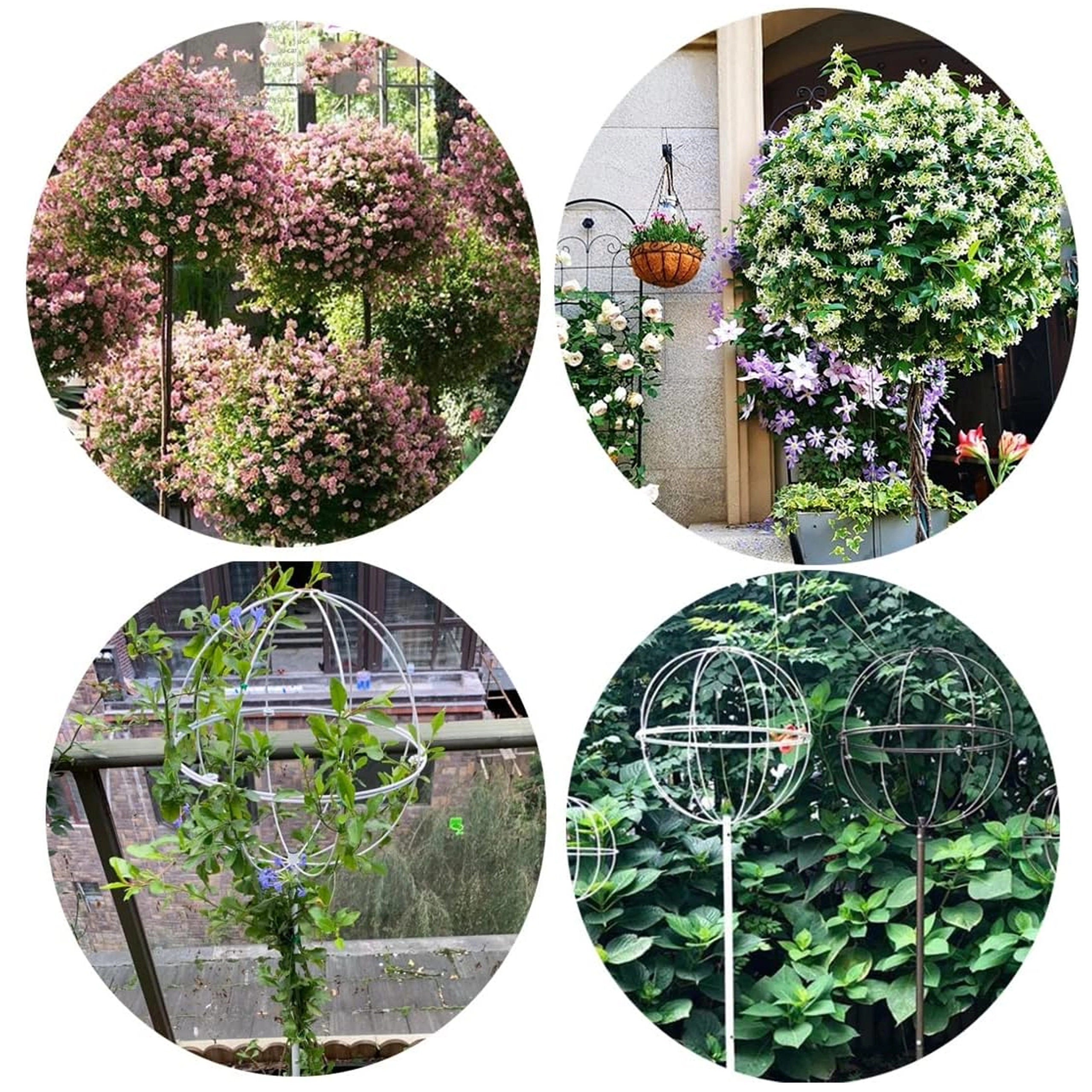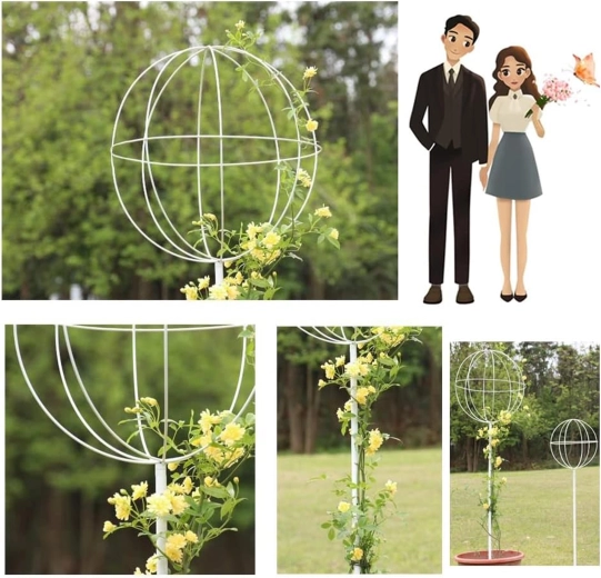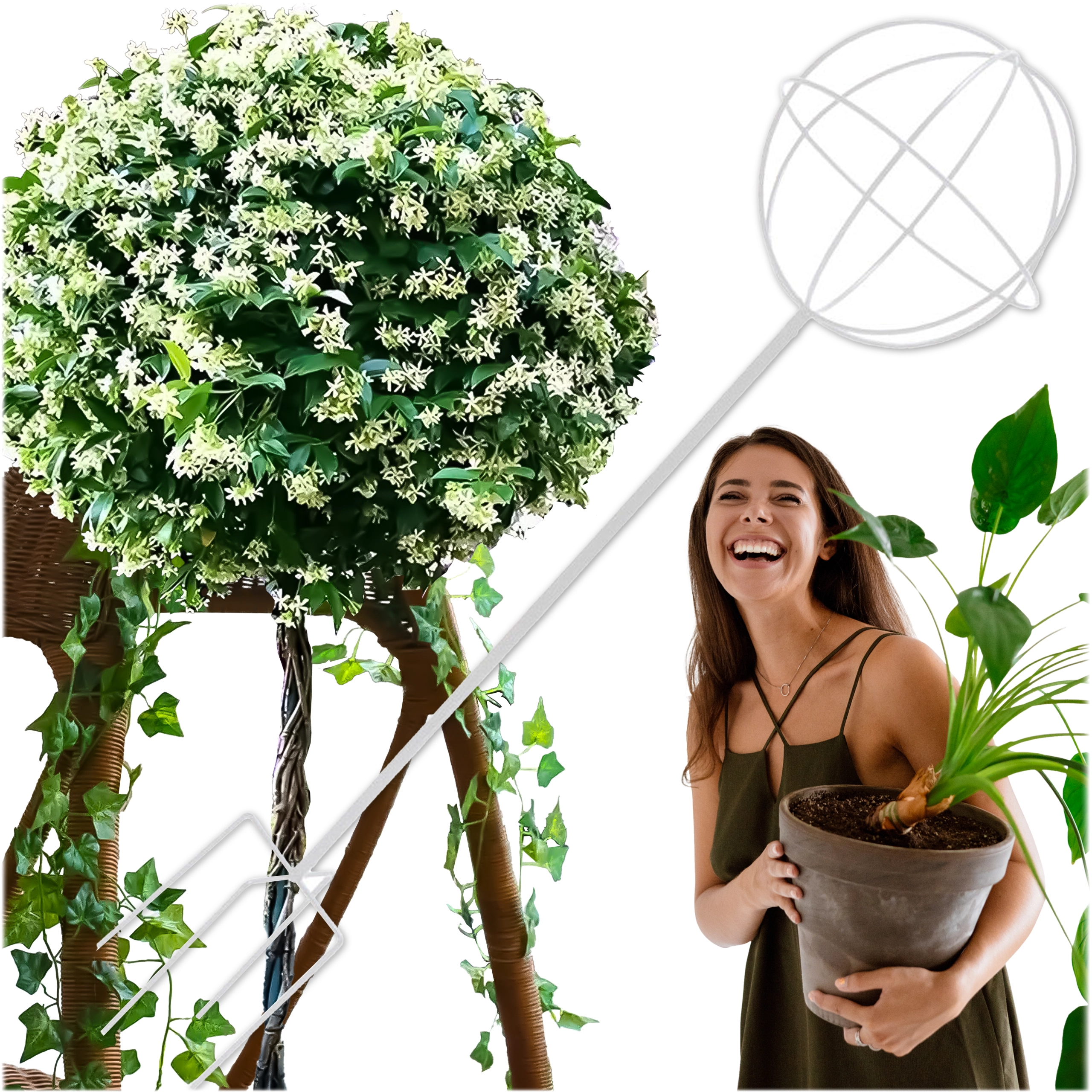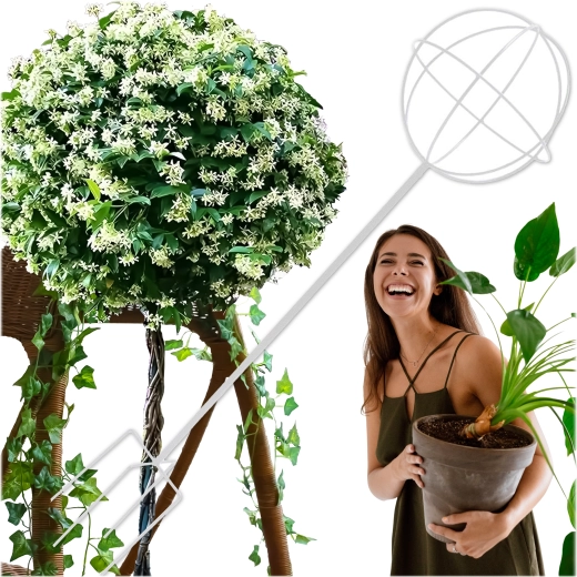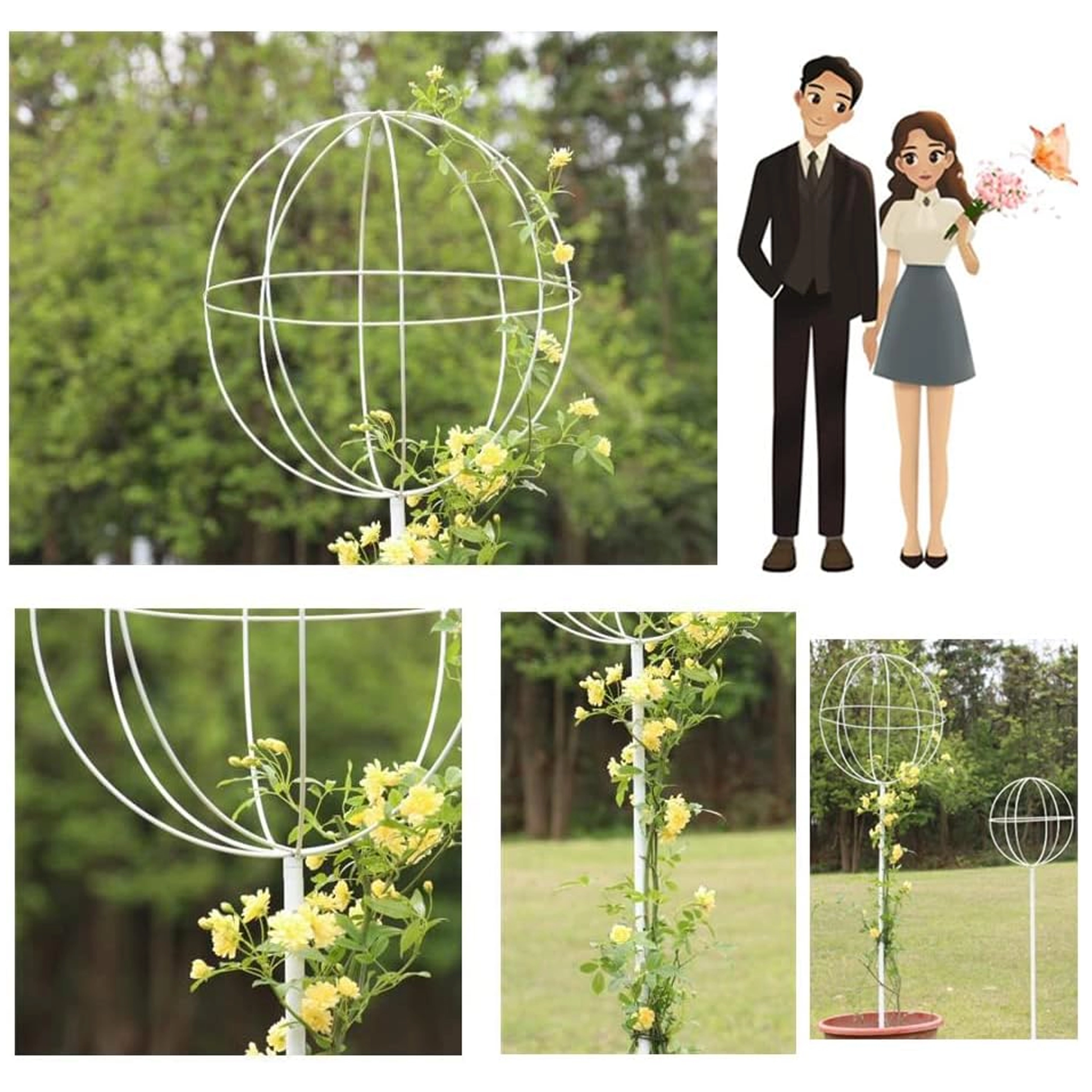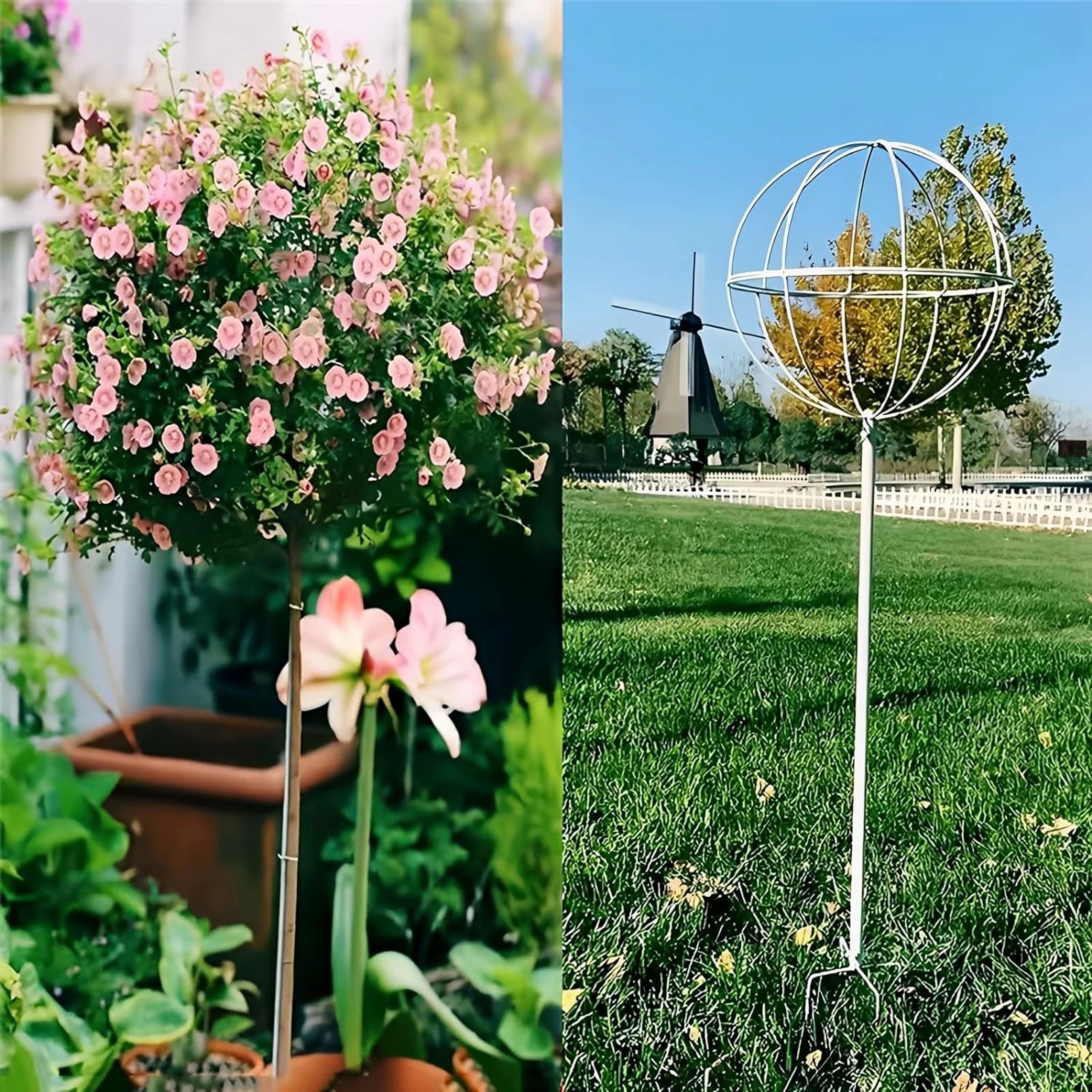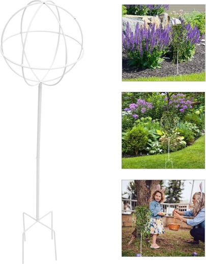 Tato designově čistá kovová opora ve tvaru koule na tyči je ideální pro pěstování popínavých rostlin, růží a kvetoucích lián. Díky bílému povrchu vynikne mezi zelení a květy, zároveň však nenaruší přirozený vzhled výsadby. Snadno se zapíchne do půdy a okamžitě nabídne rostlinám oporu při růstu.