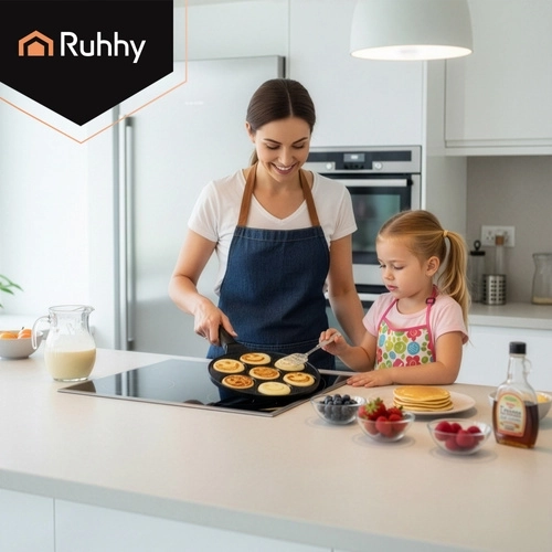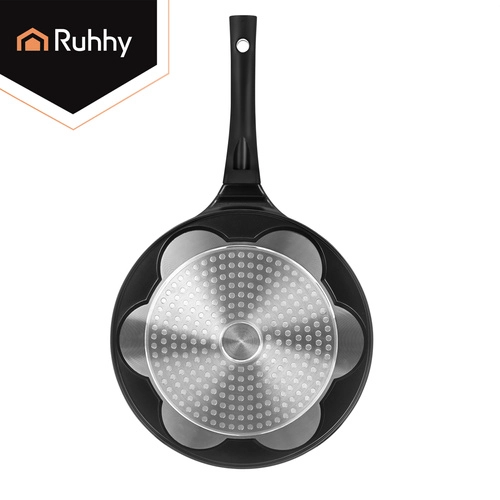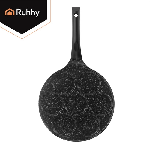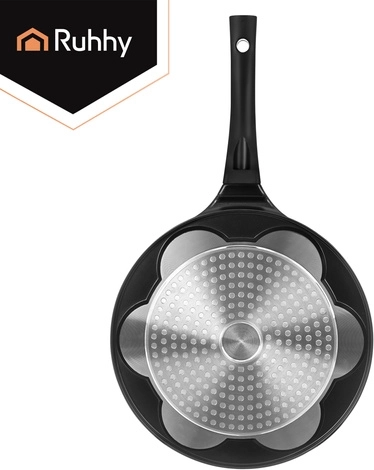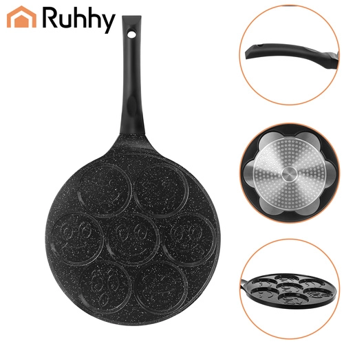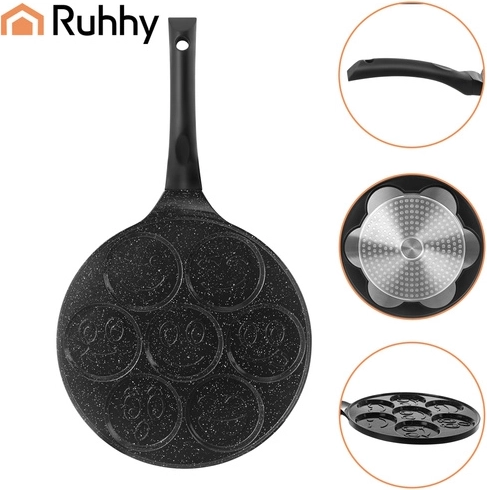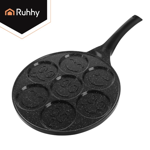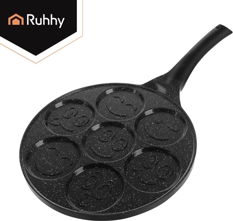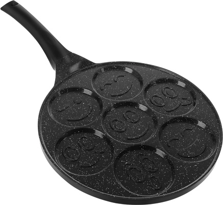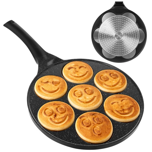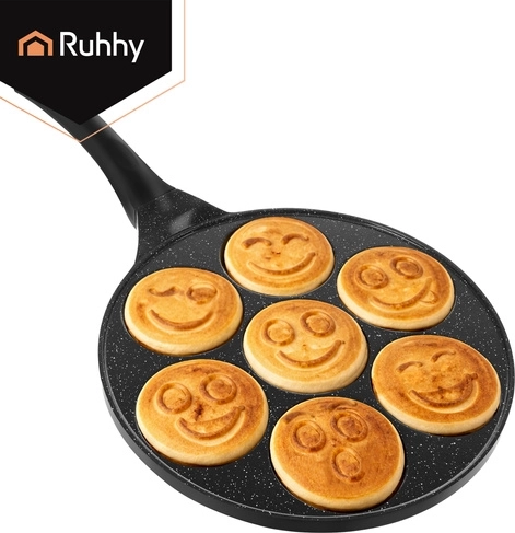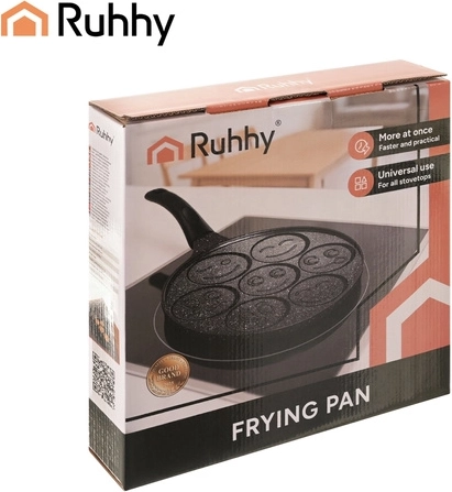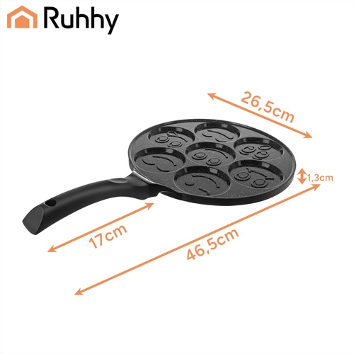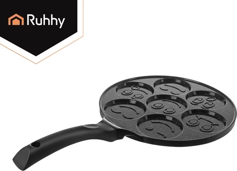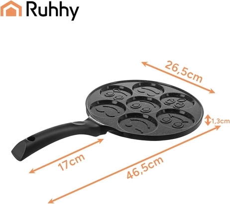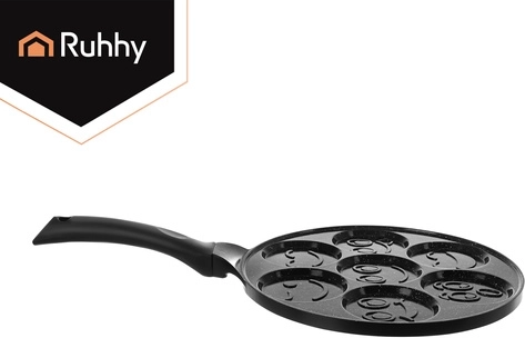 Zpestřete snídaně s pánví RUHHY pro 7 mini lívanců s veselými obličeji. Díky nepřilnavé keramické povrchové úpravě bez PFOA smažíte s minimem tuku, zatímco indukční dno zajistí rovnoměrný rozvod tepla. Odnímatelná, neohřívající se rukojeť přináší bezpečí a pohodlí na všech typech sporáků.