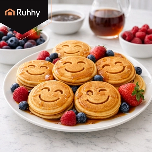Formy s úsměvy vytvoří jednotný tvar i tloušťku a přinesou radost dětem i dospělým – ideální pro rychlé rodinné snídaně.