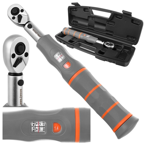 Kompaktní momentový klíč BIGSTREN 1/4" se rozsahem 2–26 Nm pro přesné utažení spojů v cyklistice, auto-moto i servisu. Nabízí ±0,5 % přesnost, ráčnovou hlavici, přepínání pravý/levý chod a zámek nastavení pro jistotu a opakovatelné výsledky. Odolná konstrukce z chromové slitiny a Cr‑Mo oceli a ergonomická TPR rukojeť zaručují dlouhou životnost a pohodlnou práci.