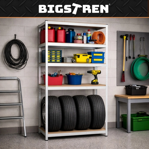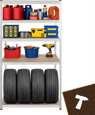 Hledáte spolehlivé řešení pro těžké nářadí, boxy, pneumatiky nebo materiál? Tento profesionální regál BIGSTREN kombinuje pevnou ocelovou konstrukci s pěti MDF policemi a dvojitými výztuhami pod každou policí. Díky tomu bezpečně unese až 200 kg na polici bez prohýbání a poskytne maximální stabilitu.