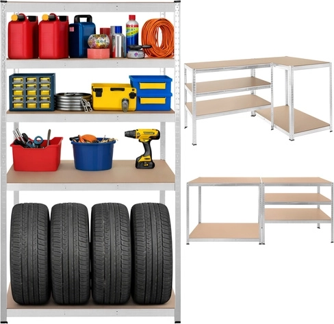 Použijte jako vysoký regál, rozdělte na dvě nižší jednotky nebo sestavte praktický rohový stůl/regál do dílny.