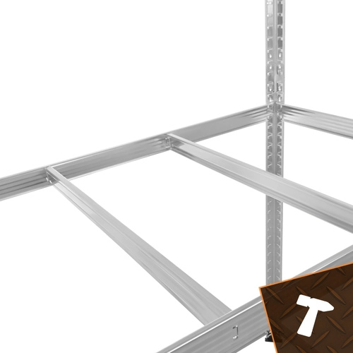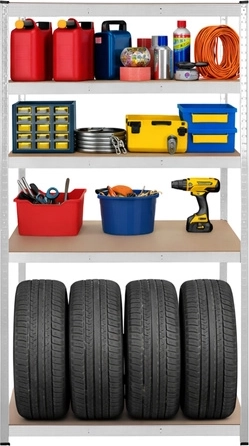 Dvojité výztuhy pod každou MDF policí a ocelové profily 0,7 mm zaručují vysokou stabilitu – bezpečné uložení těžkých předmětů, nářadí i pneumatik.