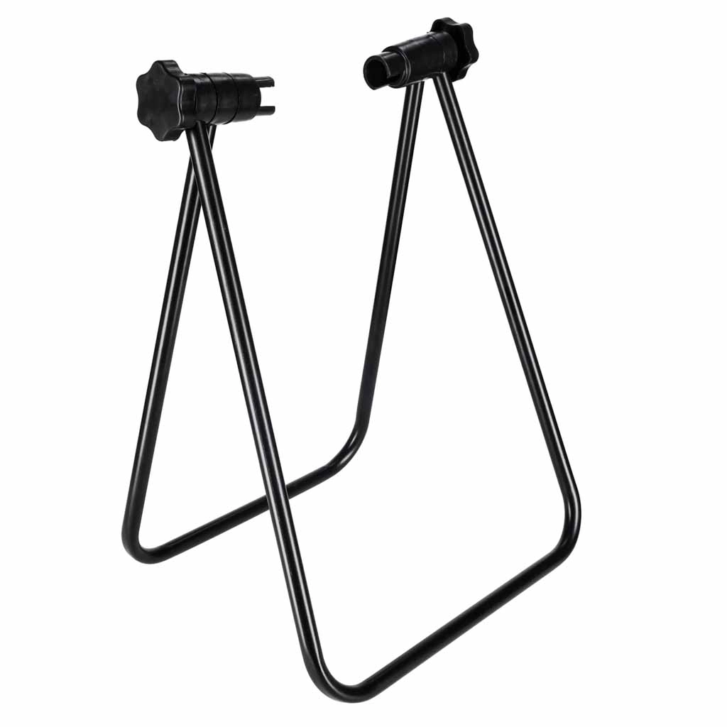 Stojan se po použití jednoduše složí do kompaktních rozměrů, což oceníte v malém bytě, garáži i dílně. Univerzální design pasuje na širokou škálu kol a gumové kontaktní plochy chrání rám i povrch náboje.