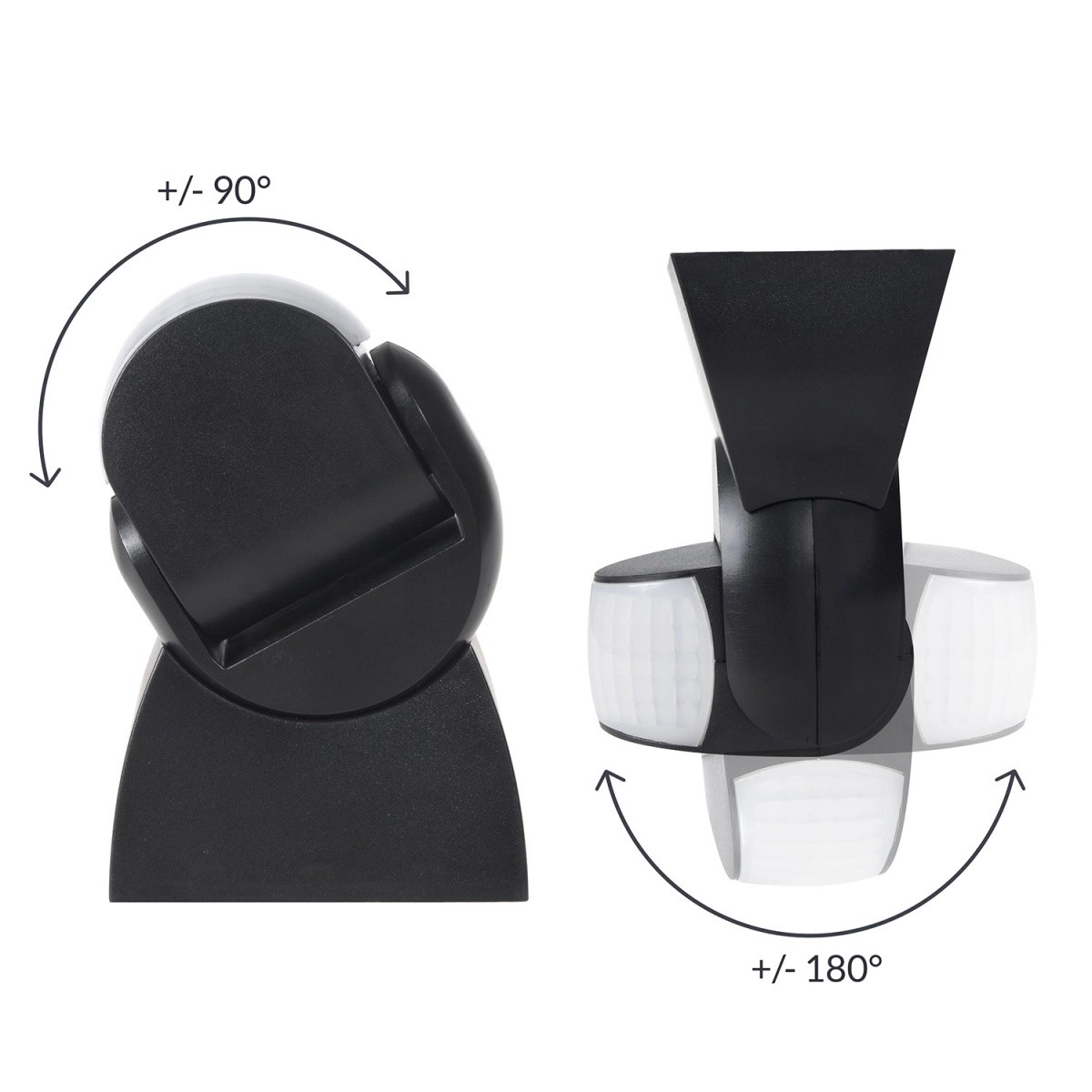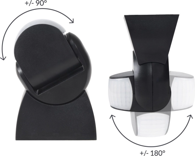 Pomocí integrovaných ovladačů lze přesně nastavit prahovou úroveň osvětlení (LUX) pro provoz od soumraku do úsvitu a délku sepnutí (TIME) od několika sekund až po 15 minut. Mechanická vertikální a horizontální regulace usnadňuje nasměrování senzoru přesně tam, kde je detekce potřeba. Montáž je rychlá a jednoduchá – stačí použít dodané hmoždinky.