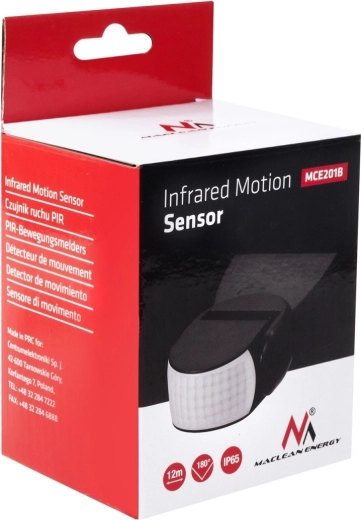 Moderní PIR senzor MACLEAN ENERGY MCE201B detekuje pohyb prostřednictvím tělesného tepla a automaticky zapíná připojené osvětlení či jiné elektrické zařízení. Vyniká vysokou citlivostí, širokým zorným polem 180° a stabilním provozem v rozšířeném teplotním rozsahu. Díky krytí IP65 je ideální pro vstupy, zahrady, chodby, sklepy nebo schodiště.