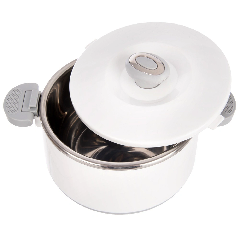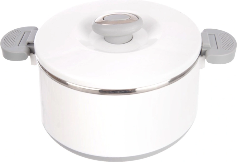 Lehká a praktická termo mísa o objemu 1,6 l udrží vaše pokrmy dlouho teplé nebo studené. Vnitřek z nerezové oceli, odolný plastový plášť v bílé barvě a pohodlné uzavírání s madlem zajišťují snadné přenášení do práce, školy i na výlety.