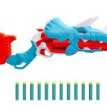 Díky mechanismu break-open je nabíjení hračkou. Stačí stisknout roh na hlavě dinosaura a komora na šipky je připravena pro tři pěnové šipky.