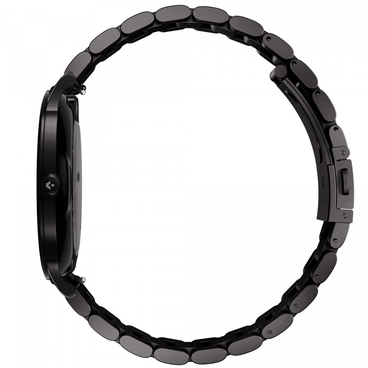Odolné Gorilla Glass chrání displej před škrábanci a dvojí provedení řemínků (ocelová bronzeta a kožený pásek) zaručí flexibilitu mezi elegantním i ležérním nošením. Integrovaný mikrofon a reproduktor umožní vyřizovat hovory přímo ze zápěstí a hlasový asistent zajistí rychlý přístup k funkcím. Baterie zvládne provoz až 7 dní, nabíjení usnadňuje praktická USB základna.