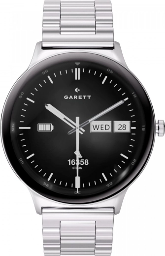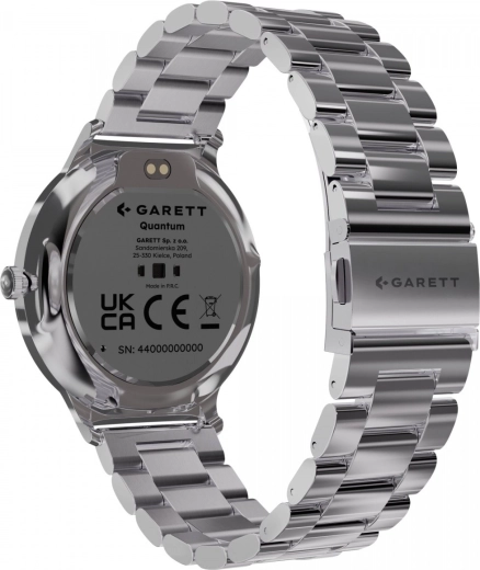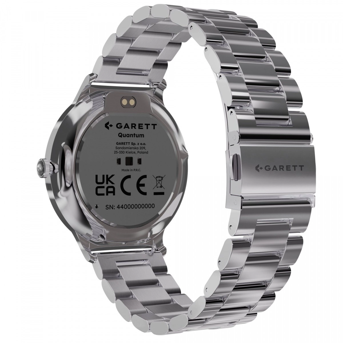Elegantní chytré hodinky GARETT Quantum kombinují AMOLED displej 1,43" s Always On Display, odolné sklo Gorilla Glass a výdrž až 7 dní. V balení najdete ocelový náramek i kožený pásek pro snadnou změnu stylu. Hodinky měří srdeční tep, krevní tlak, SpO2, spánek i stres, umožní telefonovat z zápěstí a jsou kompatibilní s Android i iOS přes aplikaci Garett Smart.