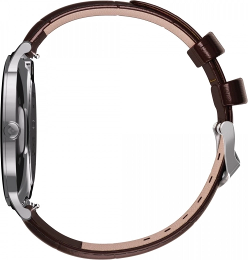 Stříbrný nerezový náramek pro eleganci a hnědý kožený pásek pro pohodlí. Součástí je nástroj pro snadné zkrácení náramku.