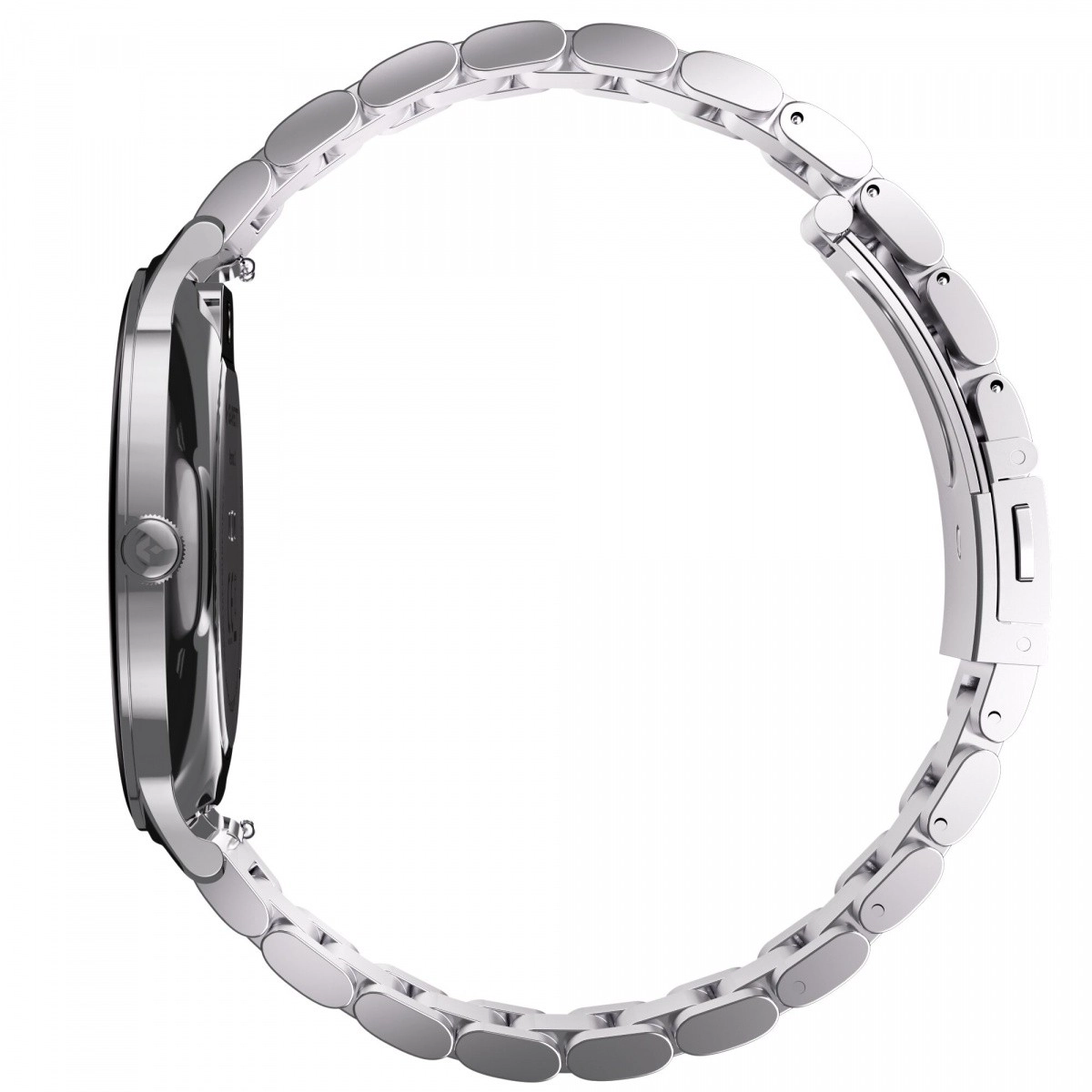 V balení získáte dvě varianty pásků – elegantní nerezový náramek a komfortní kožený řemínek. Díky přiloženému nástroji snadno upravíte délku náramku, takže hodinky vždy perfektně padnou. Baterie vydrží až týden na jedno nabití, nabíjení obstará praktická USB kolébka.
