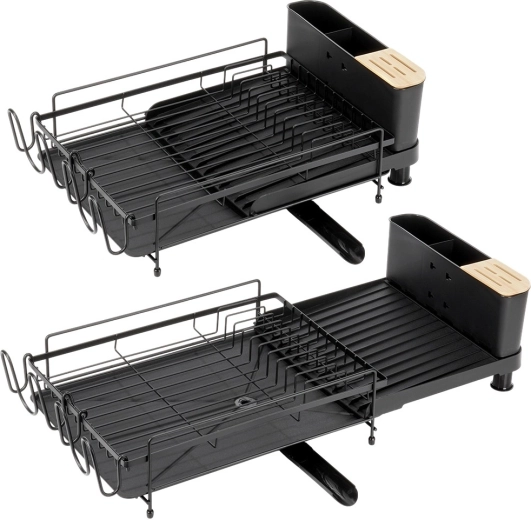 Rozsuvná sušička nádobí je ideálním řešením pro každou kuchyni, kde záleží na místě i pořádku. Nastavitelná šířka 48–70 cm umožní přizpůsobit prostor podle aktuálních potřeb, od menšího mytí až po větší várku. Robustní kovová kostra v elegantní černé barvě doplňuje moderní i klasické interiéry, zatímco protiskluzové nožky zajišťují stabilitu na pracovní desce.