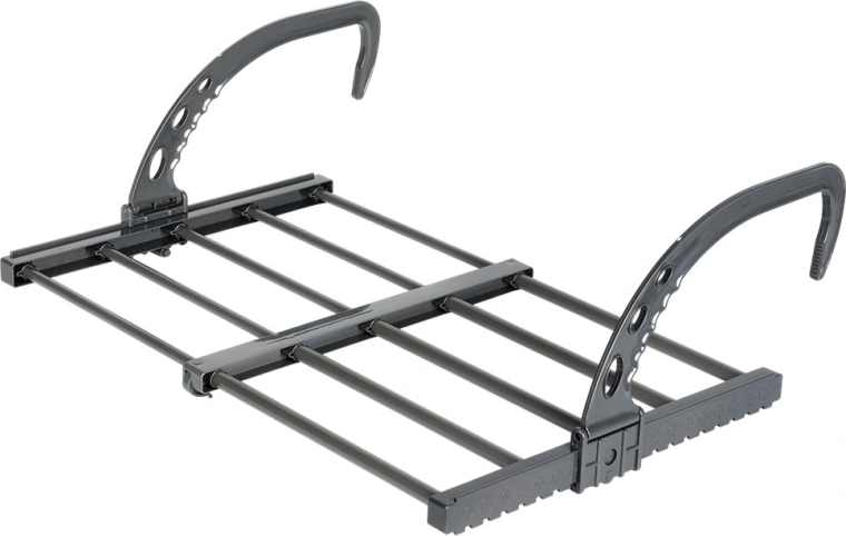 Kompaktní, odolný a univerzální – sušák jednoduše zavěsíte na většinu deskových či žebříkových radiátorů (max. hloubka 13 cm) bez vrtání a nářadí. Nastavitelná ramena dovolí přesné usazení a stabilitu, zatímco kovové tyče v šedé barvě zajistí dlouhou životnost a snadnou údržbu.