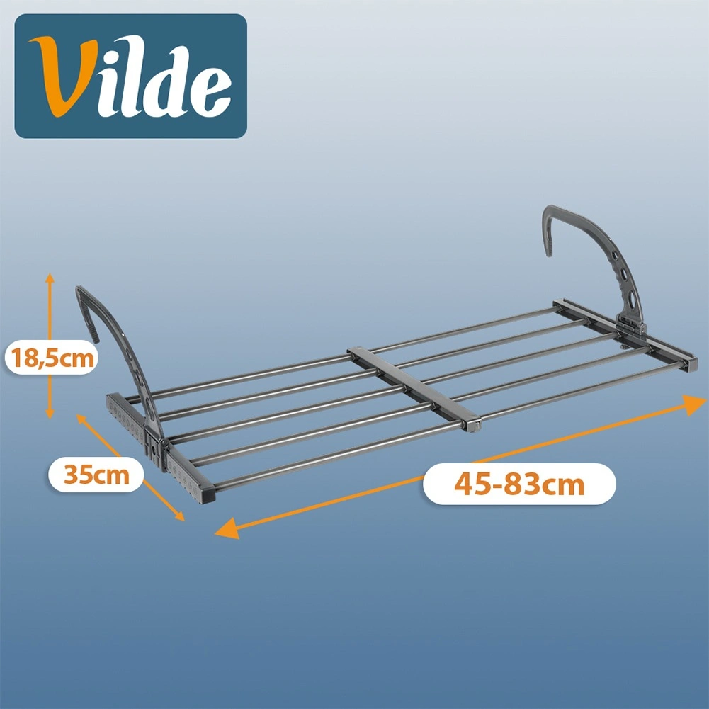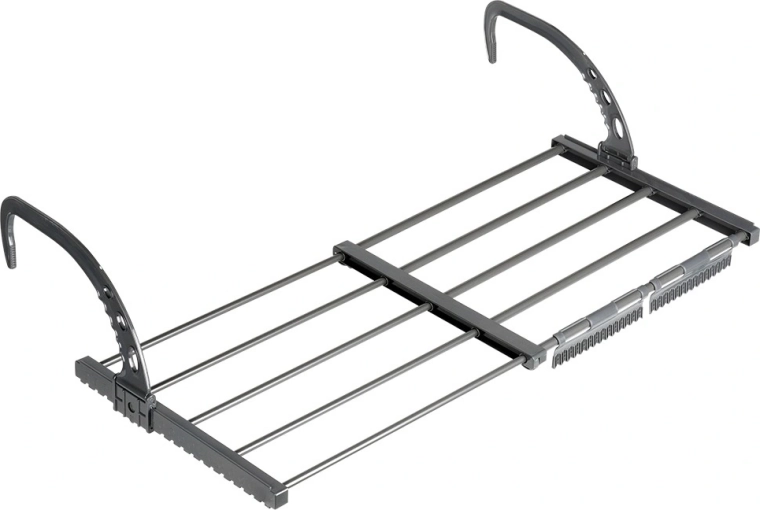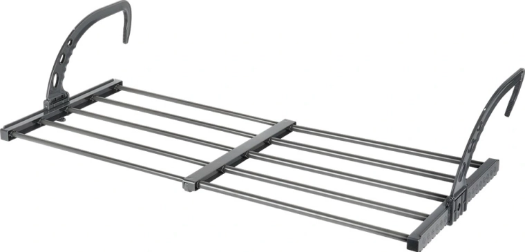 Díky skládacím, výškově nastavitelným hákům jej snadno zavěsíte na radiátor o šířce až 13 cm, ale také na balkonové či terasové zábradlí. Dva přiložené držáky usnadňují sušení drobného prádla a ponožek. Po složení zabírá minimum místa, takže je skvělý i na cestování.