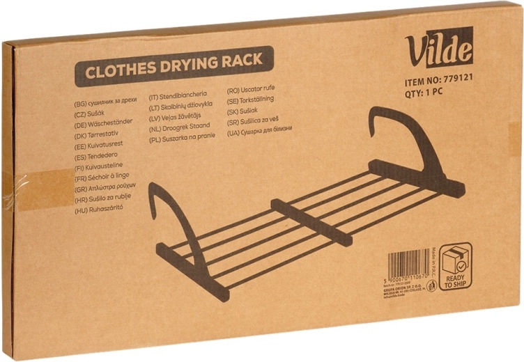 Deset pevných tyčí o délkách 50 a 62 cm poskytuje celkem 560 cm sušicí plochy, takže pohodlně usušíte spodní prádlo, trička i ručníky. Dva praktické držáky na drobnou bielizeň urychlí sušení ponožek či spodního prádla bez kolíčků.