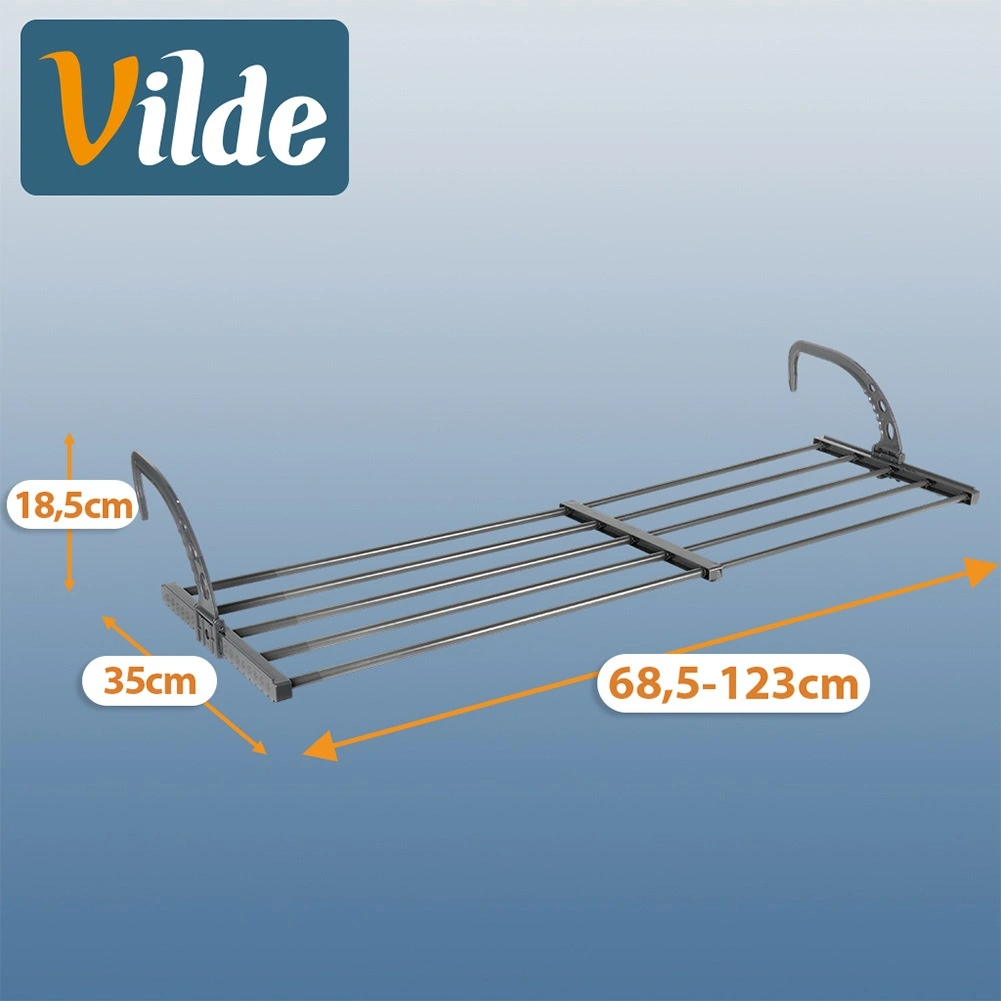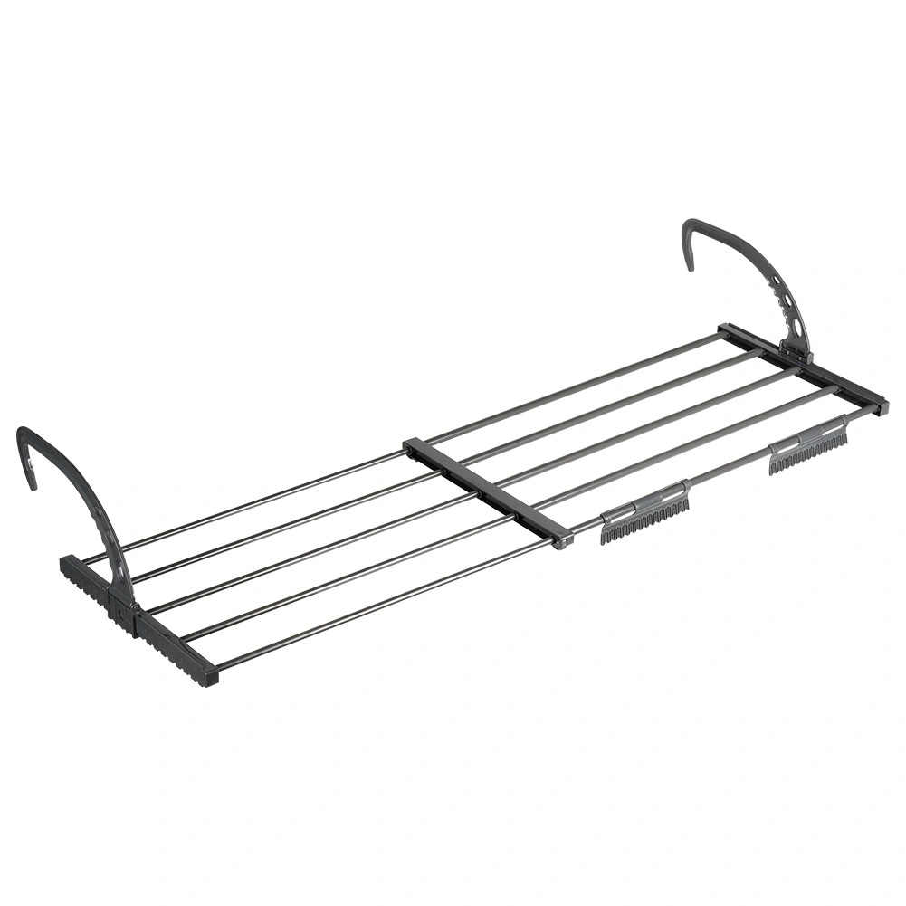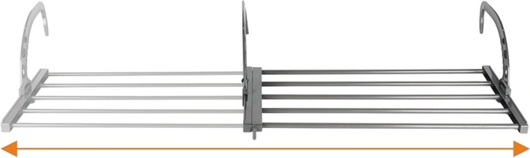 Nastavitelné a skládací háky bezpečně sedí na topení (max. 13 cm) nebo na balkonové zábradlí. Rychlá instalace bez nářadí.