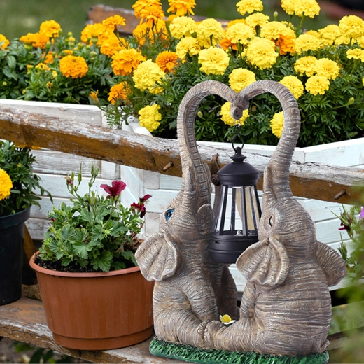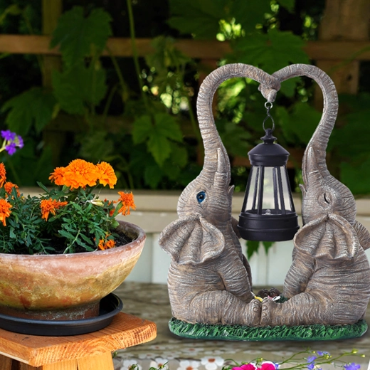 - Dekorativní zahradní lampička / figurka slonů s lucernou