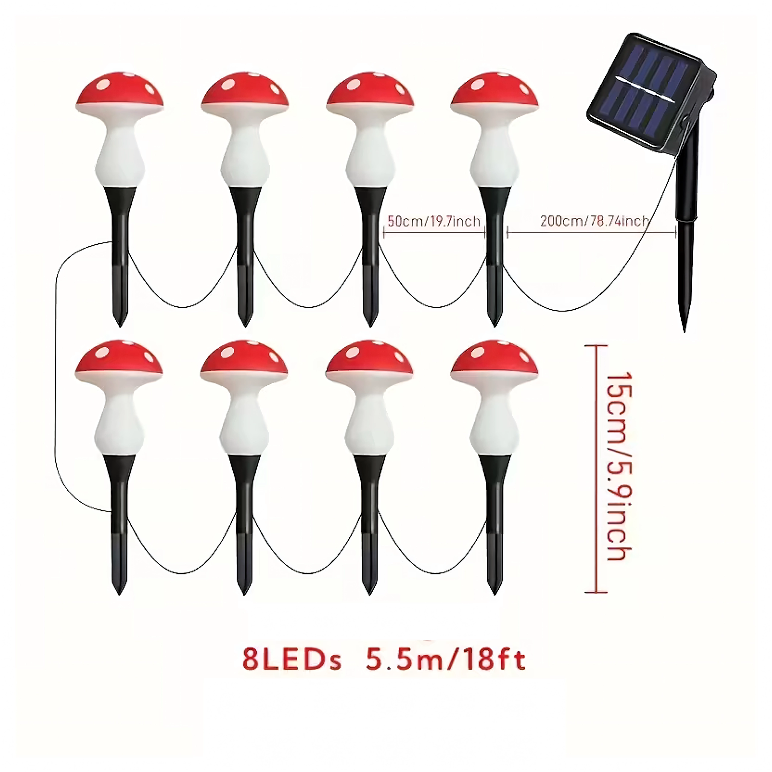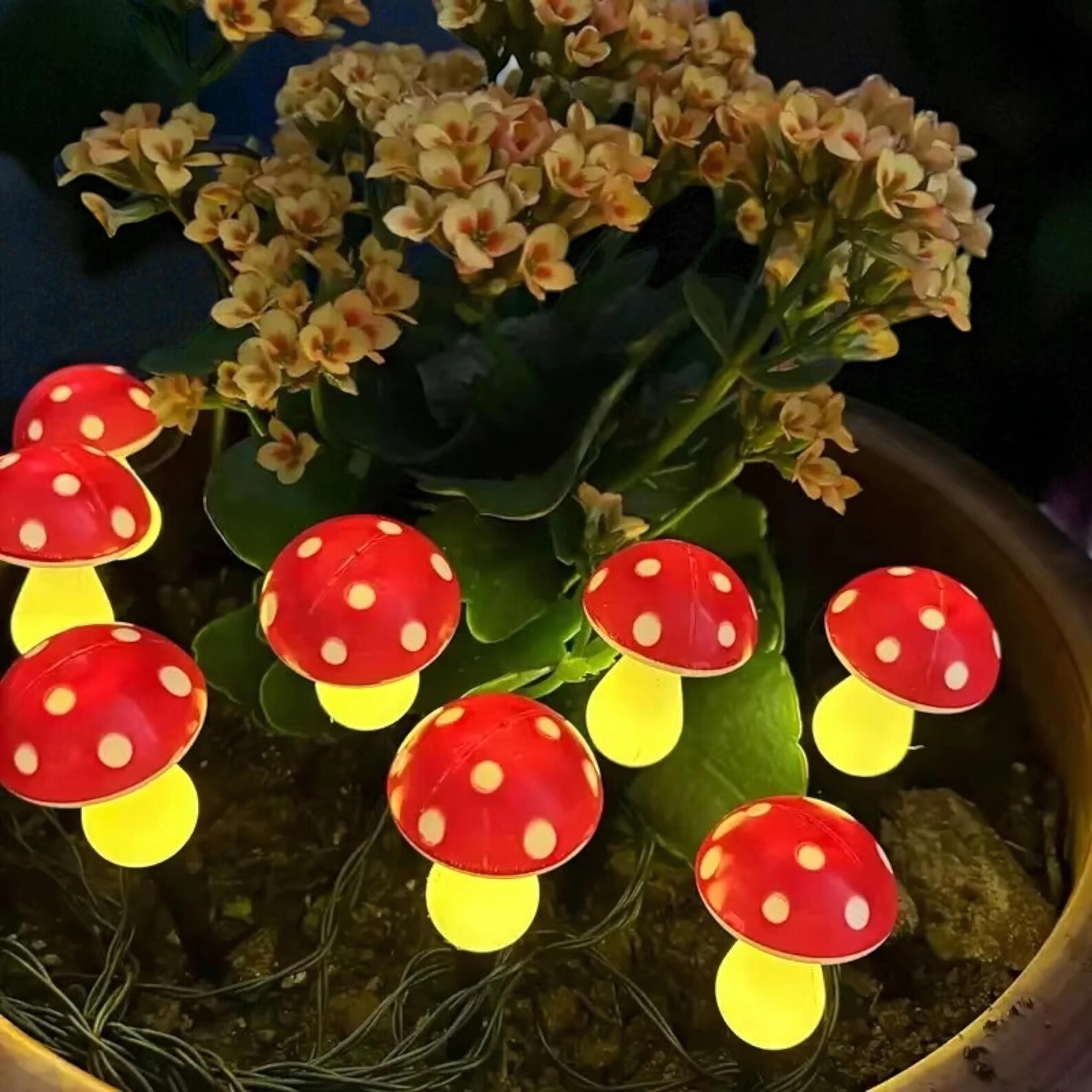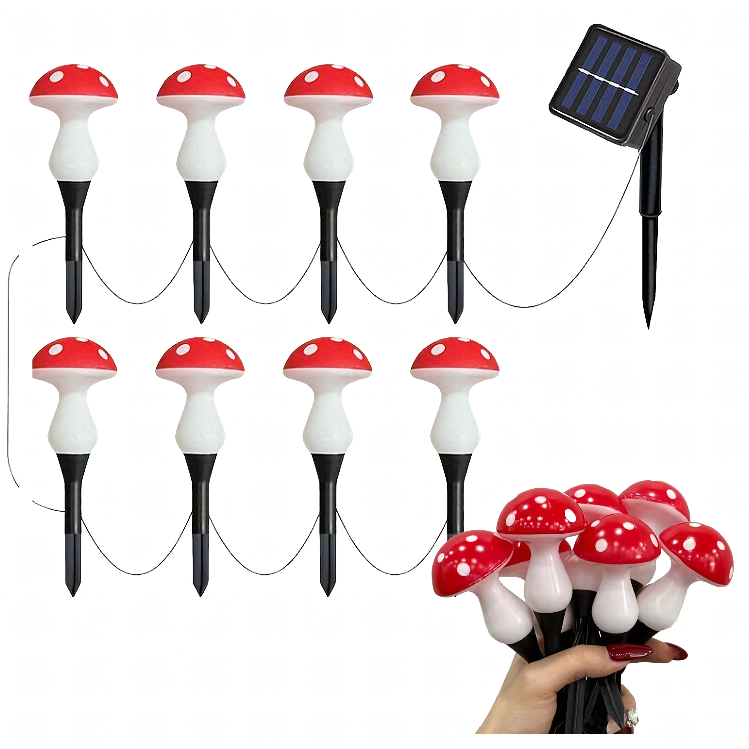 Rozzařte záhon, cestičku i květináč kouzelnými světýlky ve tvaru muchomůrek. Tento set nabízí 8 solárních LED světel na 5,5m kabelu s teplým příjemným svitem, automatickým nočním rozsvícením a odolností pro venkovní použití – bez kabeláže do sítě a bez starostí.