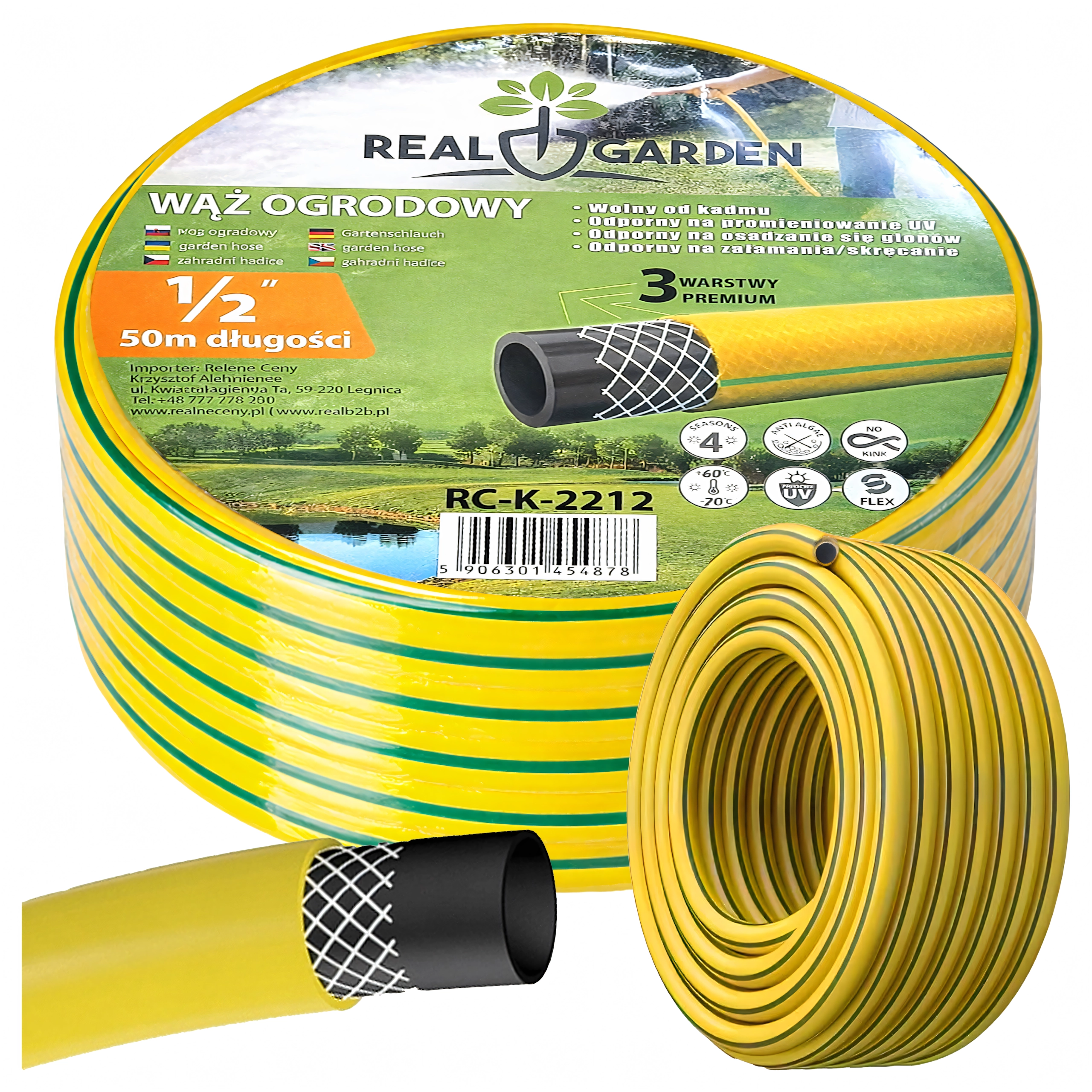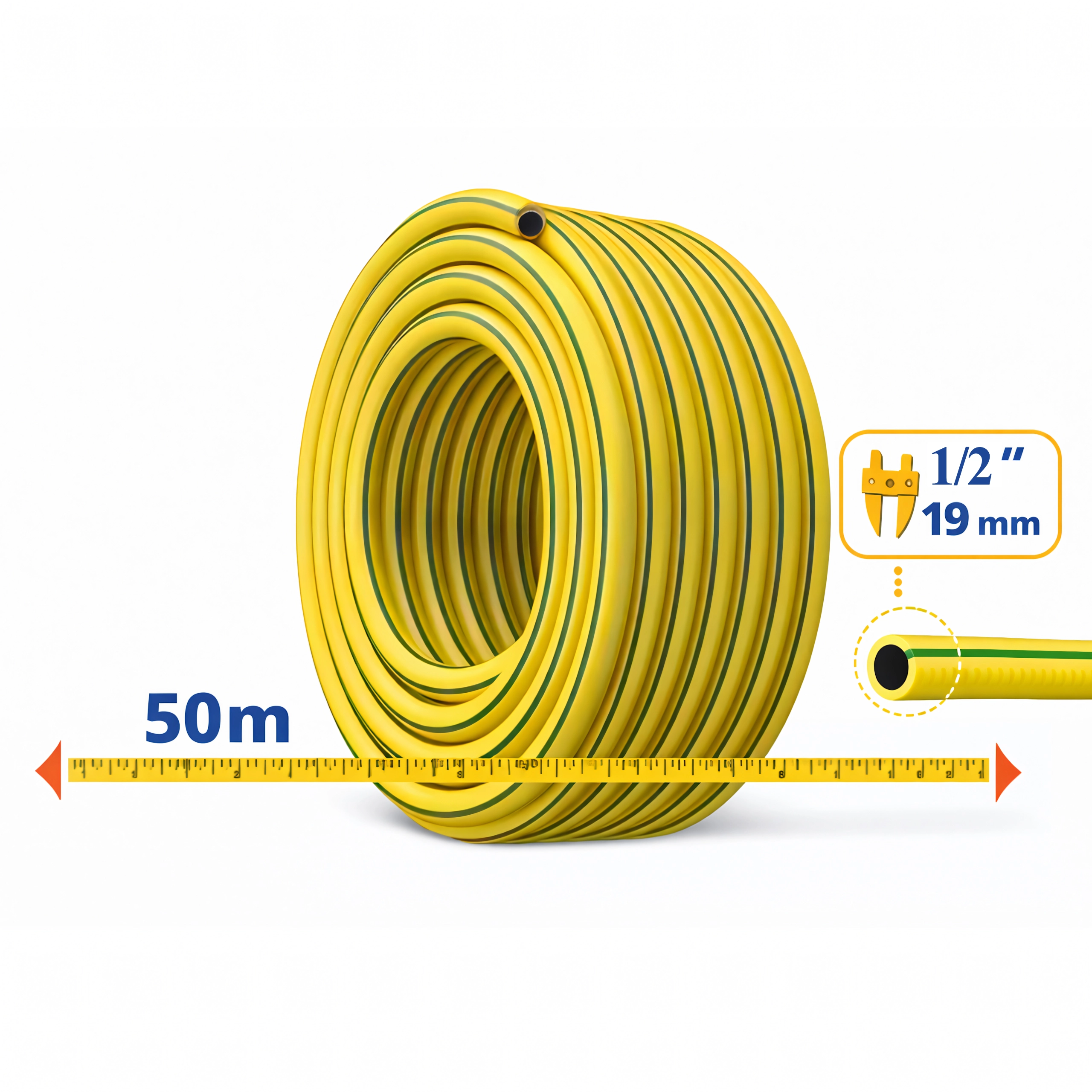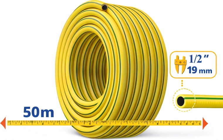 Tato 3vrstvá zesílená zahradní hadice v délce 50 metrů je spolehlivou volbou pro pravidelné zavlažování trávníků, záhonů i skleníků. Díky odolnému provedení a pružnému materiálu se snadno navíjí, nepraská a nenechává se zalomit v ostrých ohybech.