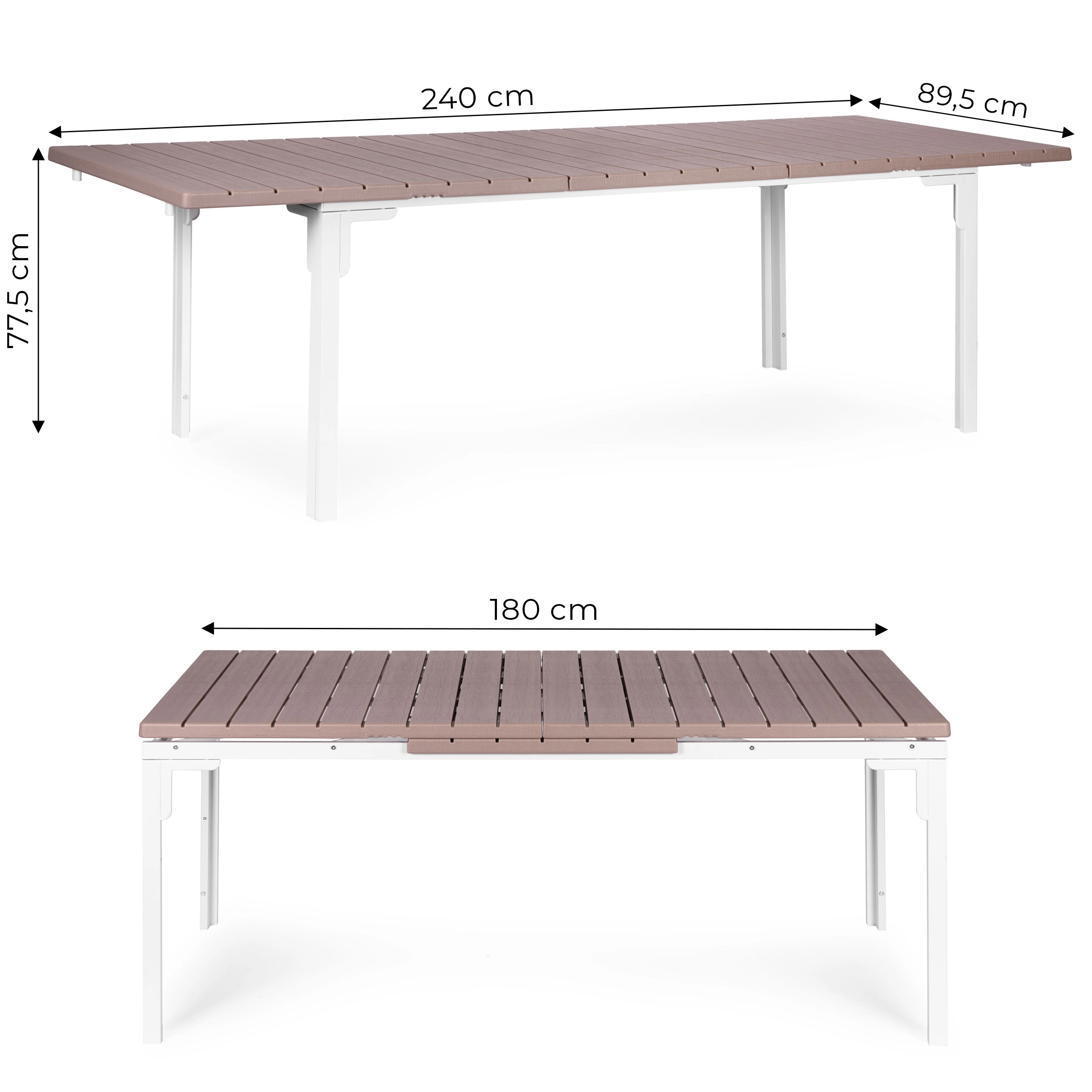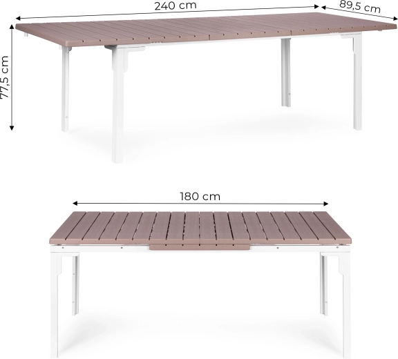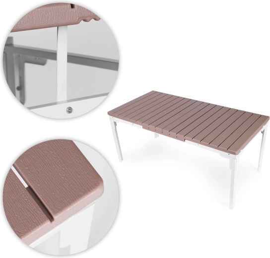 Vdechněte své terase nebo zahradě nový život se stolem, který se přizpůsobí každé příležitosti. Díky rozkládacímu mechanismu 180–240 cm snadno vytvoříte více místa pro rodinné obědy i větší setkání s přáteli. Povrch z HDPE lamel s jemnou texturou dřeva působí elegantně a současně se výborně udržuje.