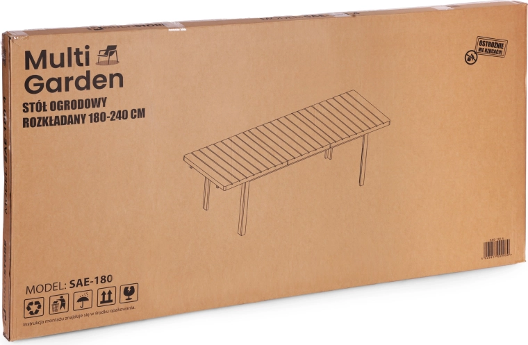 Elegantní rozkládací zahradní stůl MultiGarden nabízí prostorný jídelní povrch pro až 12 osob, plynulé prodloužení z 180 na 240 cm a odolnou kombinaci ocelové konstrukce a HDPE desky s dekorem dřeva. Je odolný vůči povětrnosti, snadno se čistí a díky stabilnímu mechanismu s aretací zůstává pevný i po roztažení.