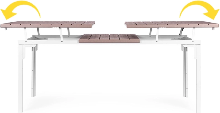 Intuitivní mechanismus umožňuje rychle zvětšit plochu stolu bez použití nářadí. Získáte pohodlné místo pro více hostů během pár sekund.