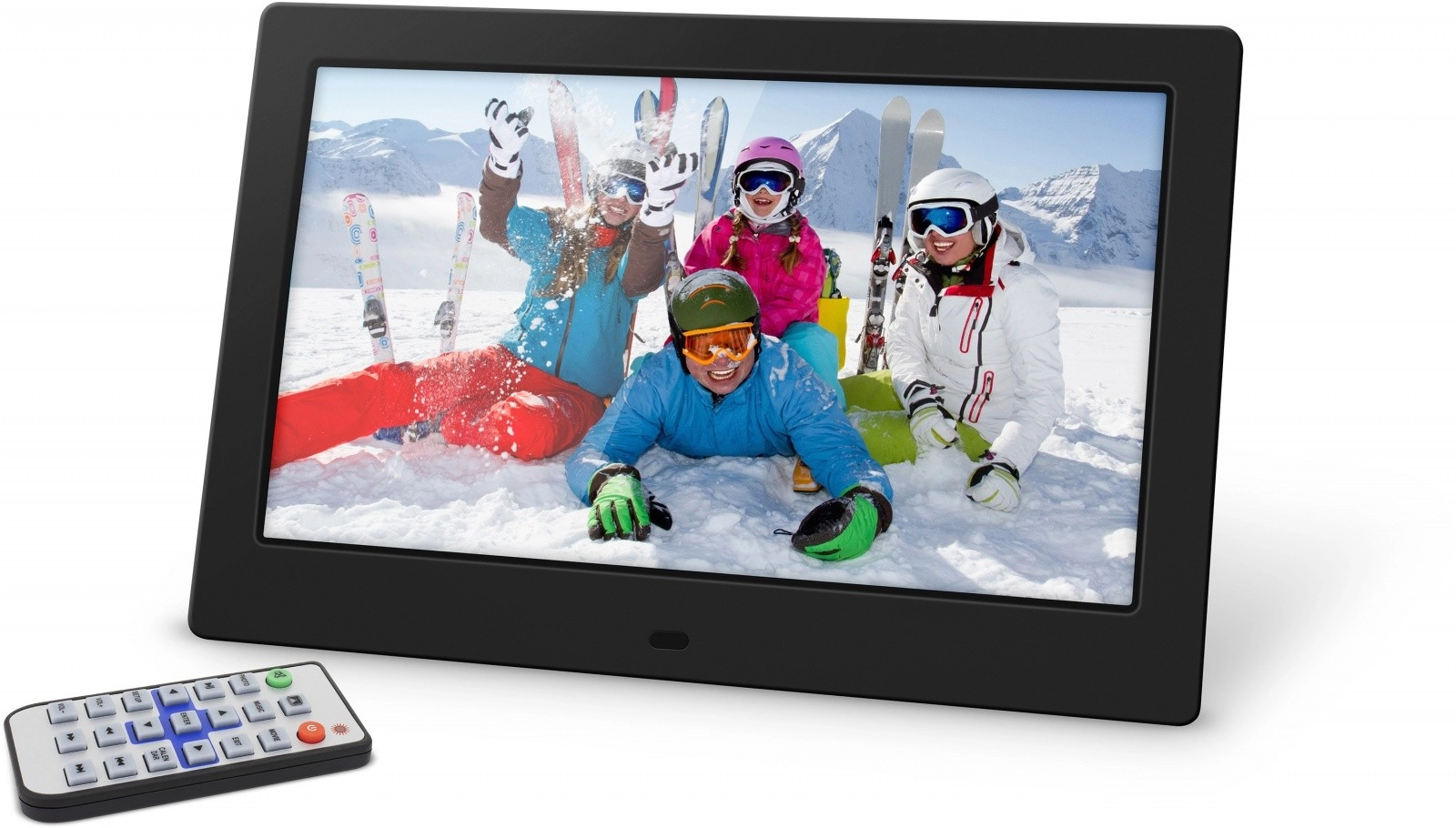 Pro pohodlné používání slouží dálkový ovladač, nastavení jasu, kontrastu a saturace, a přehledná slideshow s volbou intervalu. Integrované hodiny, kalendář, budík a minutka dělají z rámečku praktického pomocníka do domácnosti i kanceláře. V případě krátkého výpadku proudu pomůže paměť pro obnovení stavu.