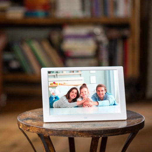Digitální fotorámeček s elegantním bílým designem zvýrazní vaše fotografie a videa na jasném IPS panelu 10,1" s ostrým podáním detailů a živými barvami. Široké pozorovací úhly zajistí skvělý obraz odkudkoli v místnosti. Ideální pro domov, kancelář i komerční prostory.