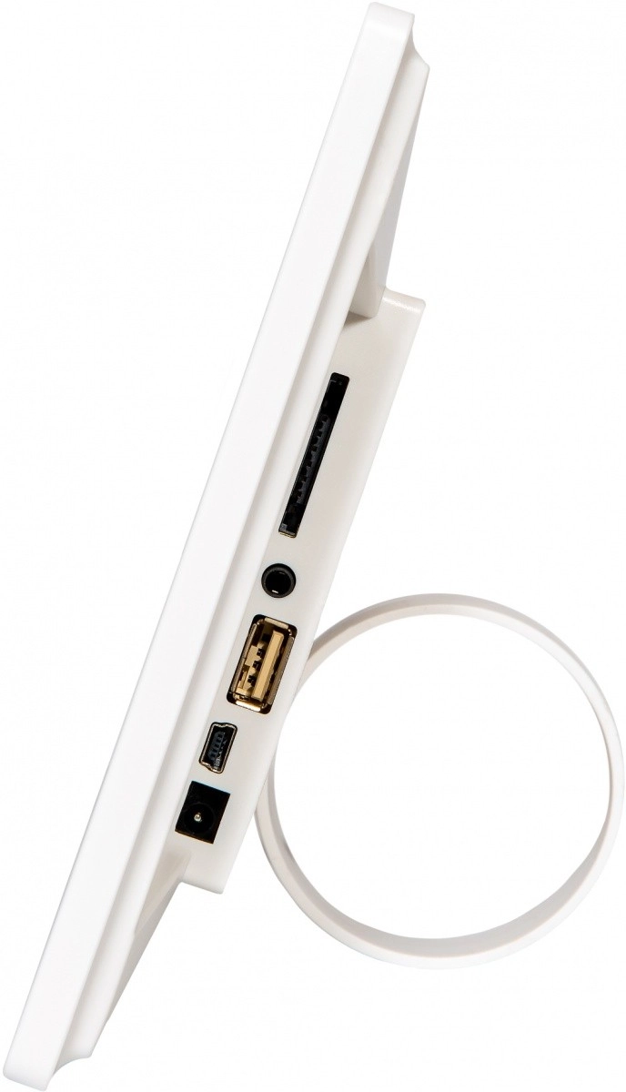 Praktické funkce jako kalendář, hodiny, budík a minutka z něj dělají užitečné centrum na každý den. Vestavěný reproduktor 2 W doplní prezentaci zvukem, zatímco sluchátkový výstup nabízí soukromý poslech. Díky možnosti stolního umístění i montáže na zeď snadno zapadne do jakéhokoli interiéru.
