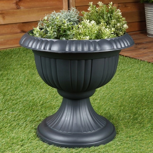 Stylový květináč v podobě antického kalicha okamžitě pozvedne vzhled každého exteriéru. Antracitový odstín se snadno kombinuje s různými typy výsadeb a doplňků. Díky kvalitnímu plastu je květináč lehce přenositelný, ale zároveň pevný a stabilní.