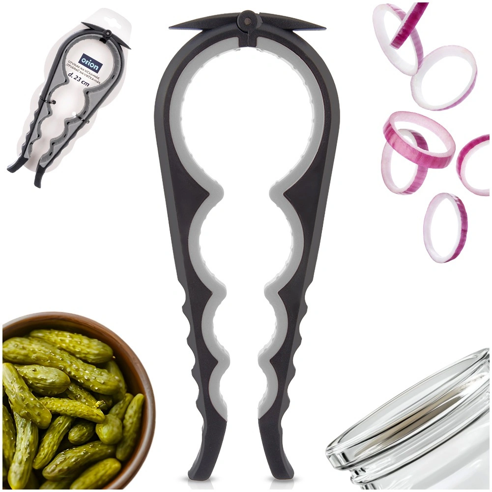 Praktický otvírák na sklenice a lahve 4v1 pro víčka o průměru cca 2,5–6 cm. Díky více velikostem úchopu, ergonomickým rukojetím a protiskluzové gumě otevřete i pevně utažená víčka rychle a bez námahy. Integrovaný háček pro nadzvednutí víčka uvolní podtlak a usnadní odšroubování.