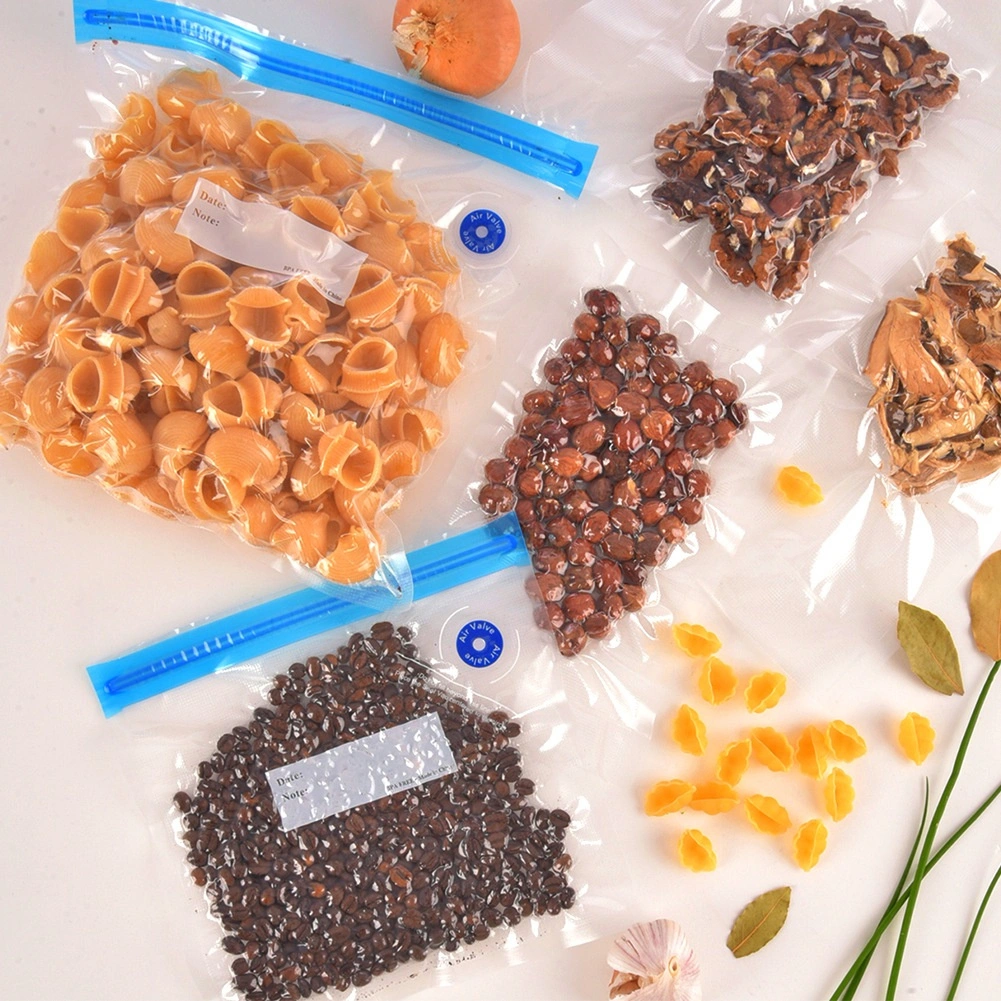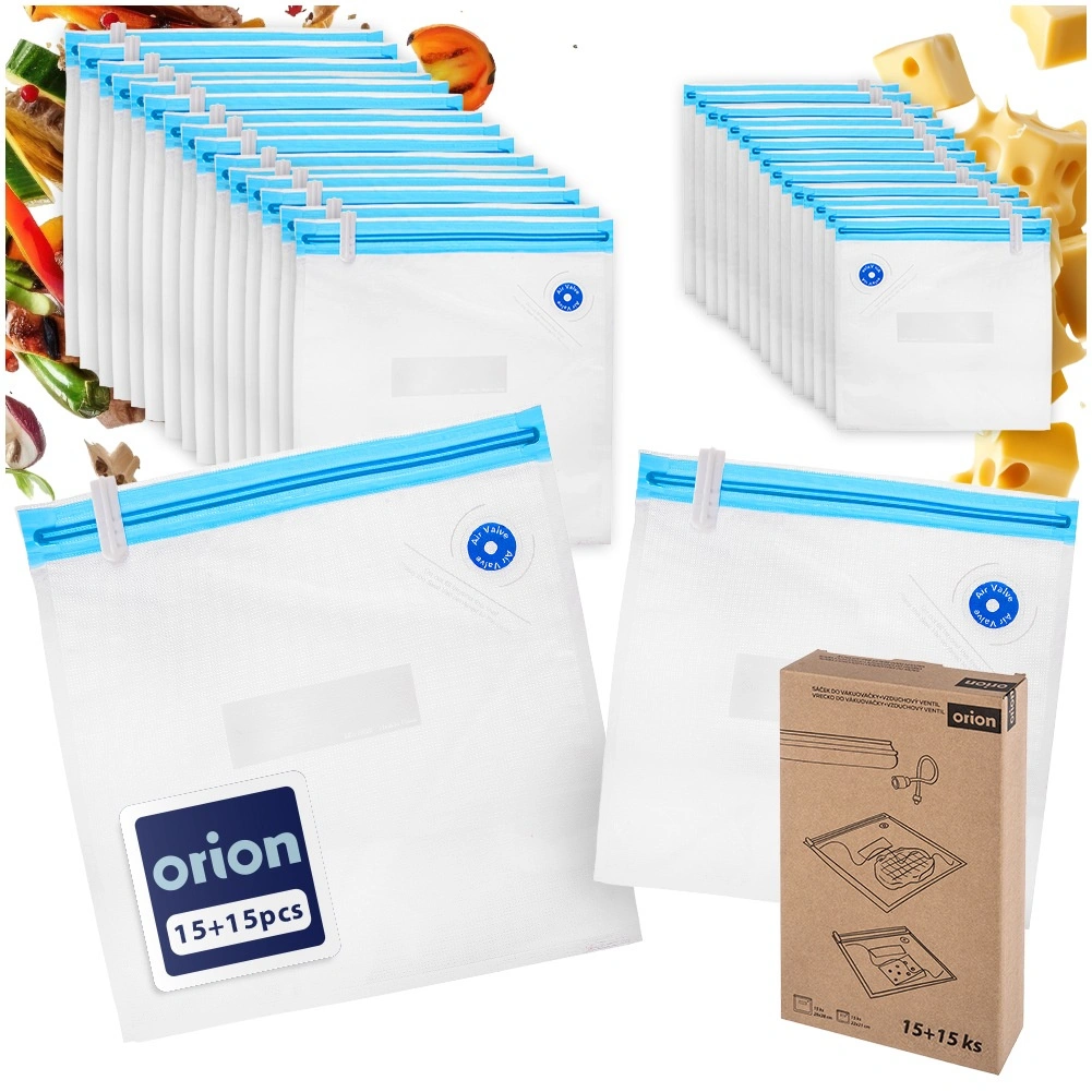 Udržte maso, sýry, zeleninu i pečivo déle čerstvé díky spolehlivým vakuovým sáčkům s dvojitým zipem a ventilem pro rychlé odsátí vzduchu. Jedna strana je hladká, druhá s reliéfní strukturou pro rovnoměrné vakuování a pevný svar.