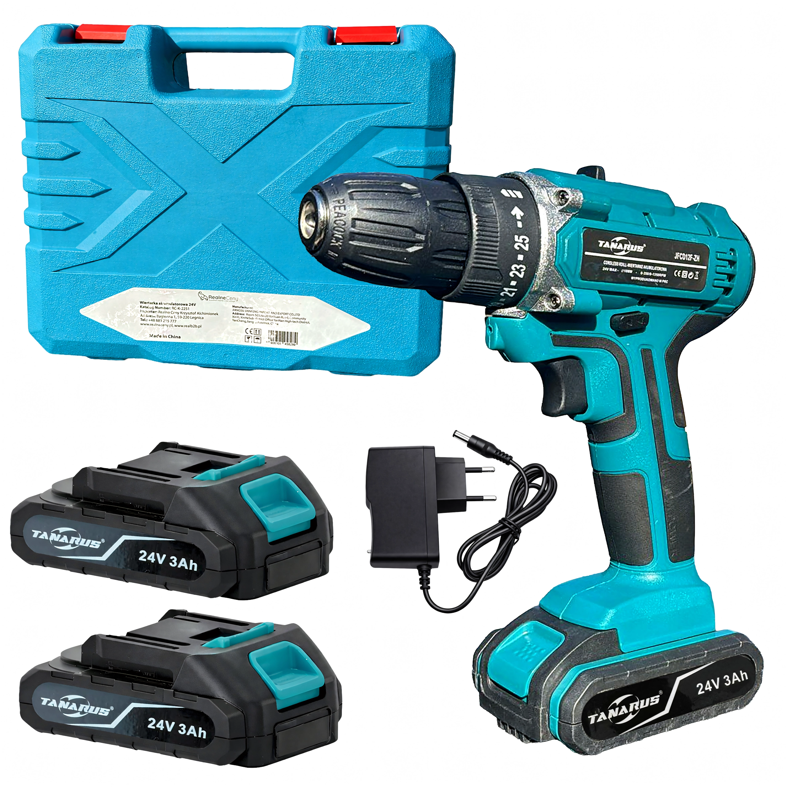 Aku vrtačka a šroubovák 24 V s kufrem a 2× 3 Ah baterií