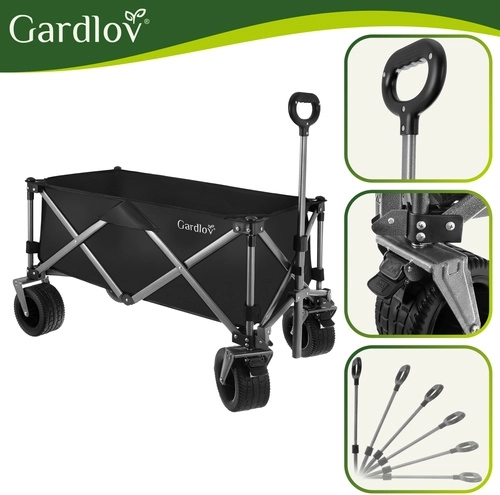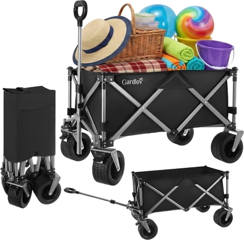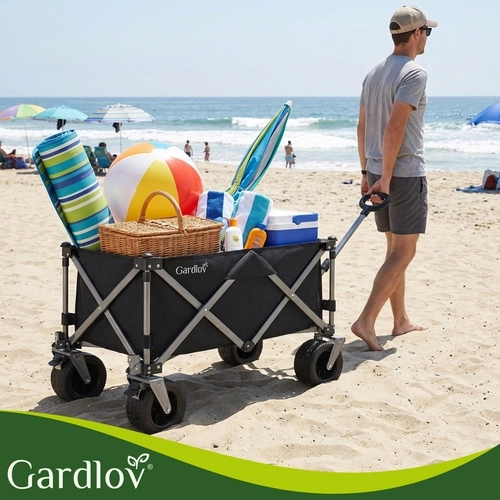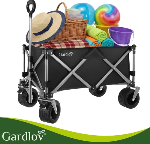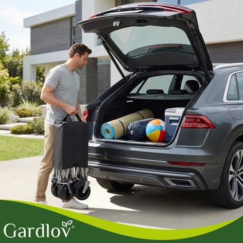 Univerzální skládací vozík GARDLOV je ideální pomocník na zahradu, pláž, kemping i chalupu. Nabízí mimořádnou nosnost 200 kg, velký objem 150 l a odolnou voděodolnou tkaninu Oxford 600D s PVC povlakem. Díky širokým terénním kolům, otočným předním kolům 360° a teleskopické rukojeti snadno převeze těžký i neskladný náklad, a po práci se rychle složí do kompaktních rozměrů.