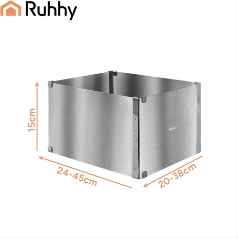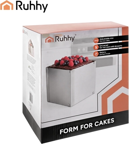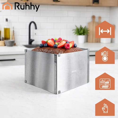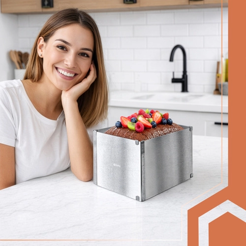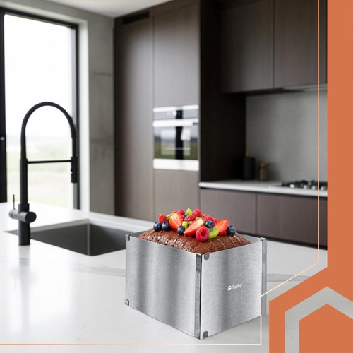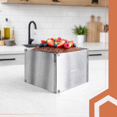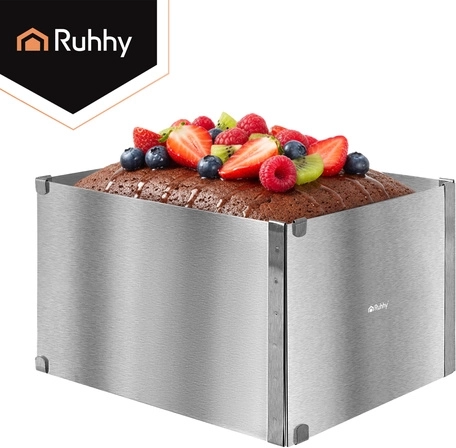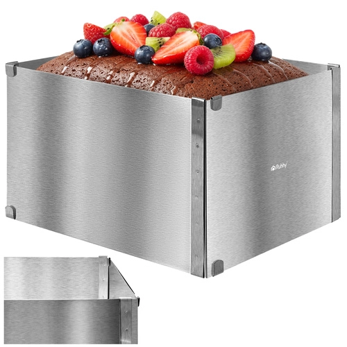 Nastavitelný obdélníkový ráfek RUHHY je univerzální pomocník pro domácí i profesionální cukráře. Umožní vám přesně tvarovat korpusy, dorty, piškoty či nepečené a vrstvené dezerty s dokonale rovnými hranami. Robustní nerezová ocel odolává korozi i deformacím a snadno se čistí.