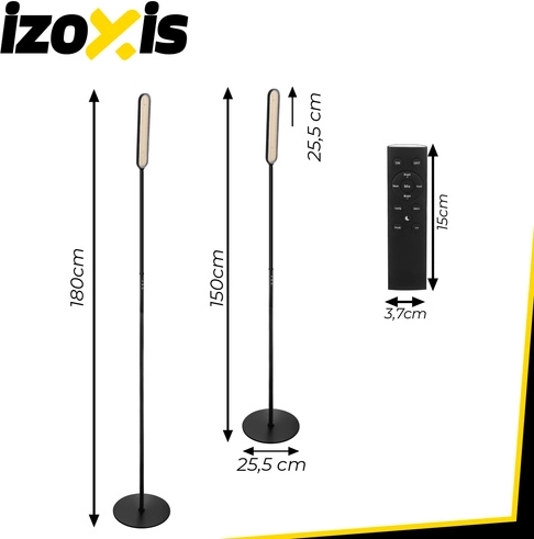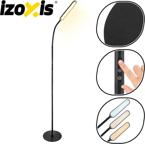 Elegantní stojací LED lampa IZOXIS o výšce 180 cm přináší moderní design a maximální komfort ovládání. Nabízí 3 barvy světla (3000K / 4000K / 6000K), 6 úrovní jasu, dálkové ovládání až do 15 m i dotykový panel. Díky 216 LED diodám svítí rovnoměrně bez oslnění, má noční režim, funkci 100% jasu jedním klikem a časovač 5 min / 1 h pro automatické vypnutí.