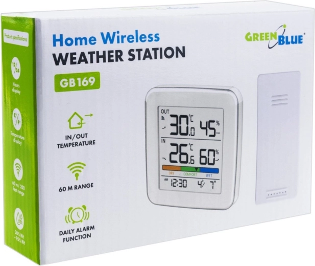 Bezdrátová domácí meteostanice s čidlem GREENBLUE GB169
