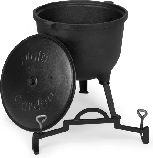 Objevte kouzlo poctivého vaření v přírodě. Litinový kotlík MULTIGARDEN s objemem 15 l je stvořený pro rodinné oslavy, táboráky i dlouhé večery na zahradě. Masivní litina je odolná vůči velmi vysokým teplotám, drží stabilní teplo a zajistí šťavnaté a aromatické výsledky.