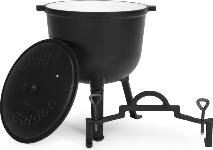 Robustní litinový kotlík MULTIGARDEN o objemu 10 l je ideální pro vaření na ohni, zahradní párty i kempování. Má odolnou litinu se smaltovaným vnitřkem pro snadné čištění, rovnoměrný rozvod tepla pro pomalé dušení a odnímatelné nožky pro stabilitu i snadný transport. Součástí je víko s větracím otvorem a praktické madlo pro bezpečnou manipulaci.