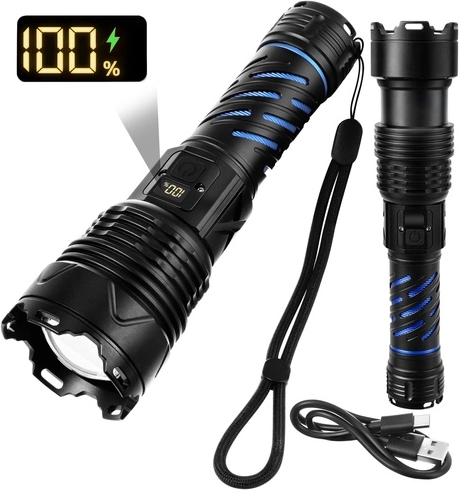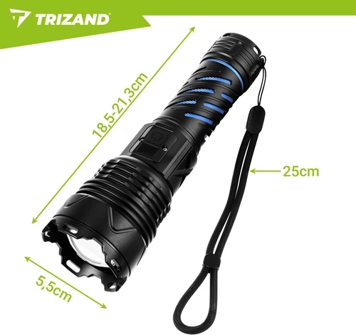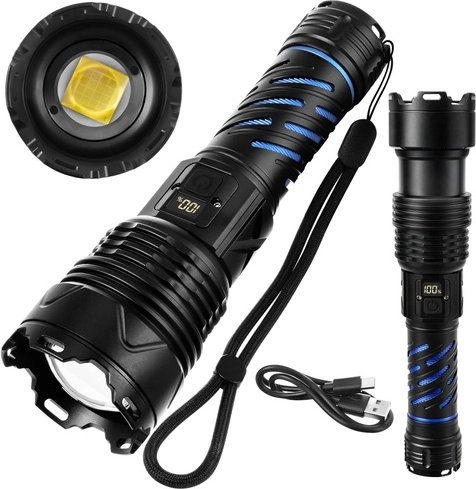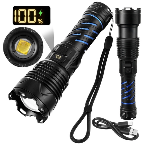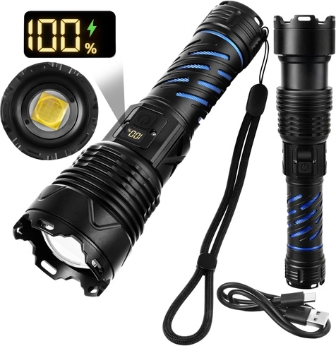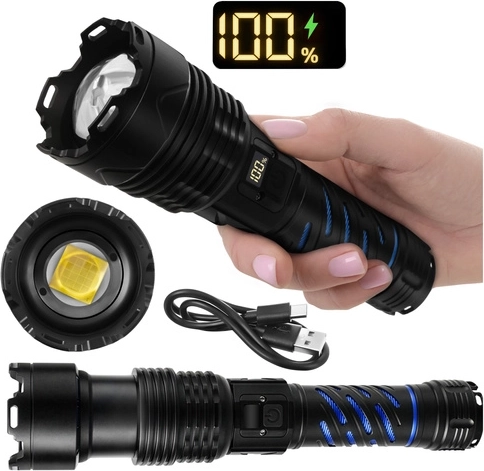 Tato robustní taktická LED svítilna poskytuje světelný tok 1500 lumenů a dosvit až 500 m, takže bezpečně dohlédnete na cestu, dvůr i vzdálené objekty. Díky zoomu snadno přepnete mezi širokým kuželem a úzkým soustředěným paprskem. O napájení se stará akumulátor 26650 5000 mAh s výdrží až 8 hodin (dle režimu), který dobijete pohodlně přes USB‑C.