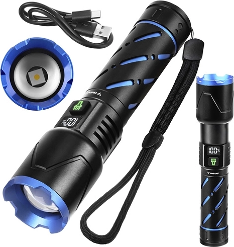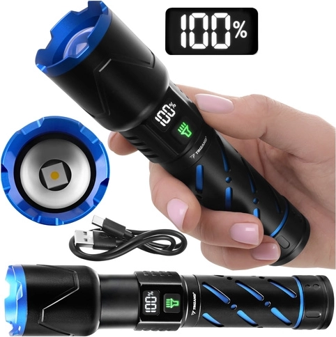 Díky akumulátoru 21700 s kapacitou 5000 mAh zvládne svítilna až 3–12 hodin provozu (dle režimu). Nabíjení přes USB‑C je rychlé a pohodlné, k dispozici je i USB výstup pro funkci powerbanku. Digitální displej na těle svítilny zobrazuje aktuální stav baterie, takže vždy víte, kdy je čas dobít.