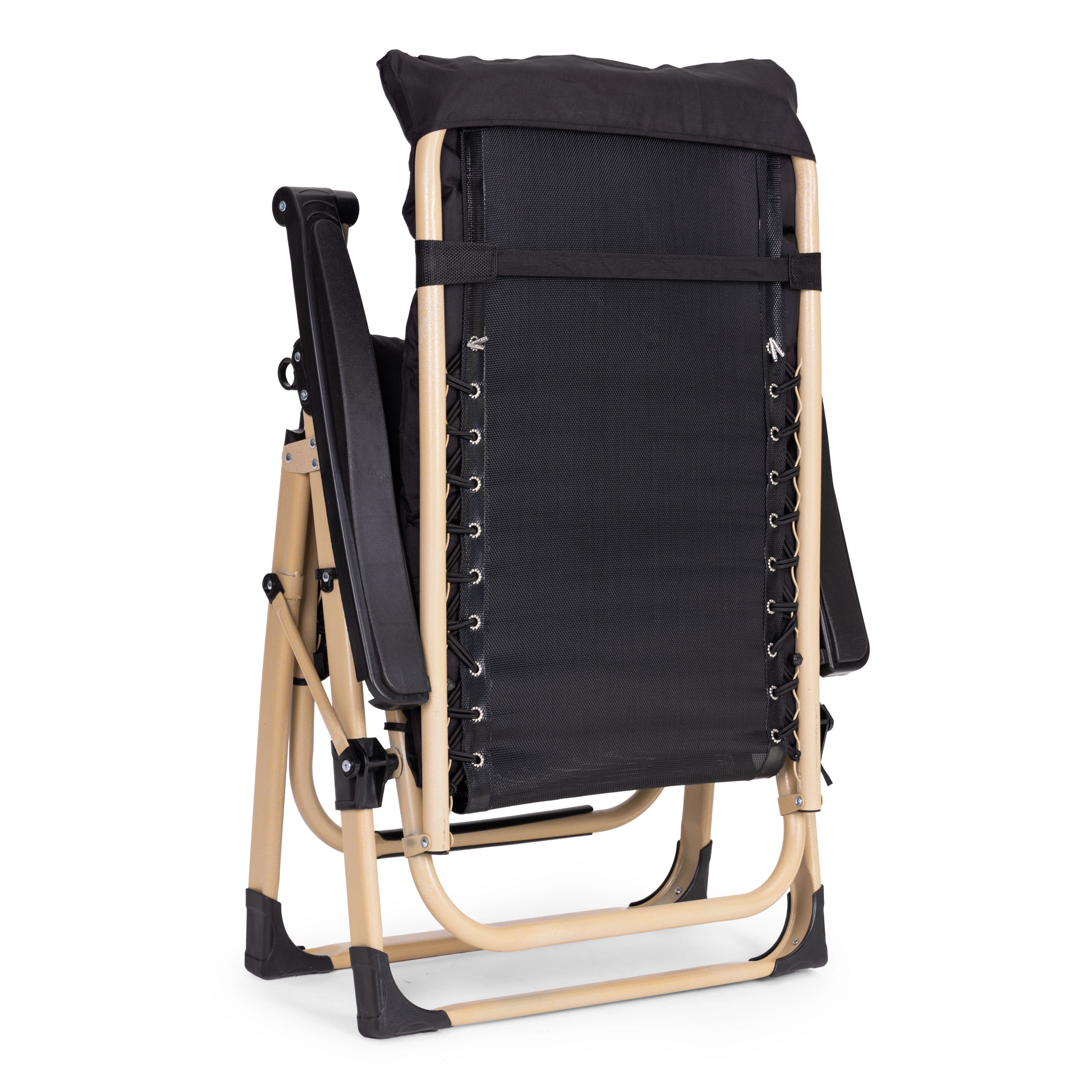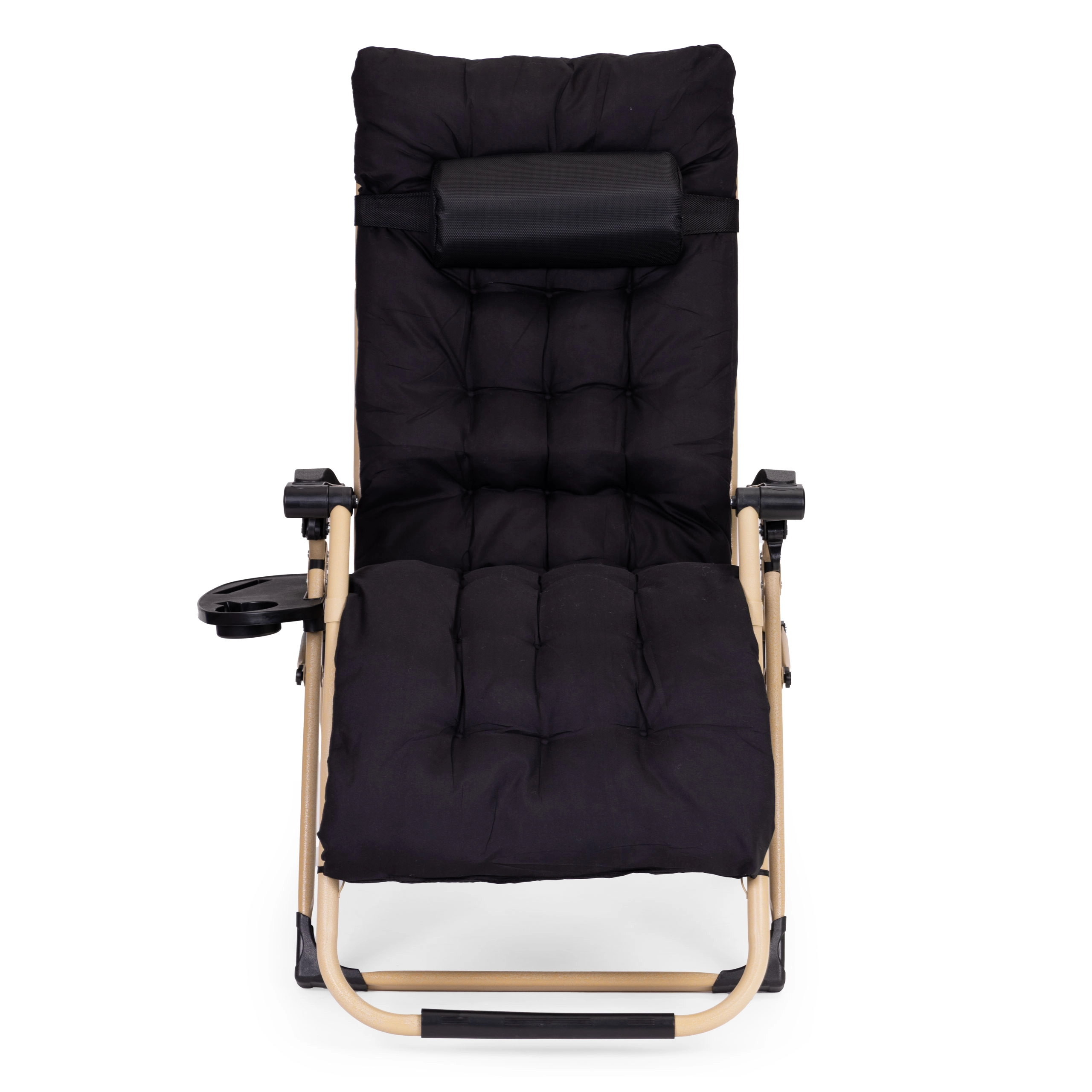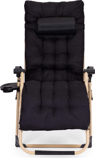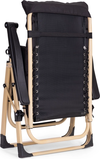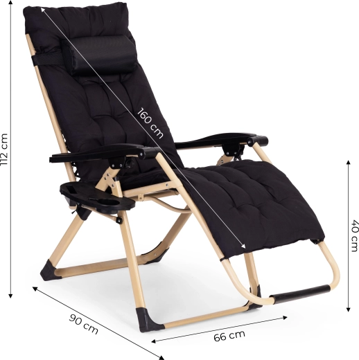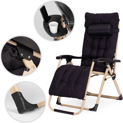 Díky plynulému polohování a aretačnímu mechanismu snadno nastavíte ideální úhel ležení. Zero-Gravity poloha uleví zádům a podporuje přirozenou relaxaci. Boční odkládací stolek s držákem nápoje a místem na telefon udrží vše potřebné na dosah ruky.