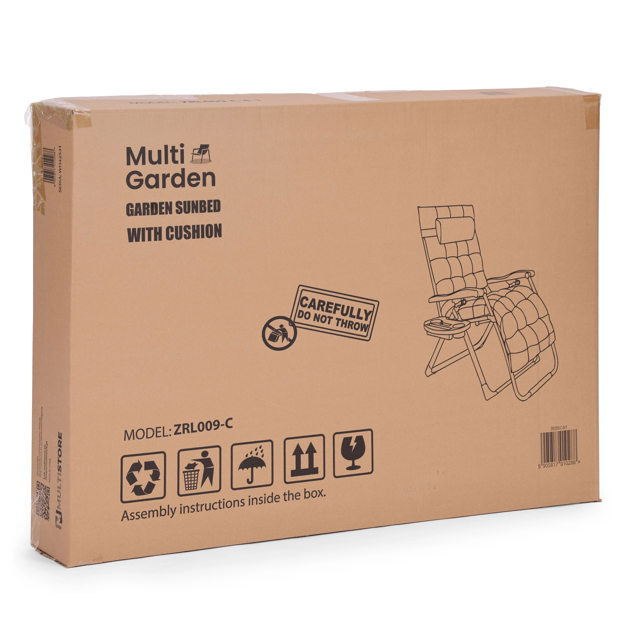 Relaxujte na čerstvém vzduchu v maximálním pohodlí. Lehátko MultiGarden kombinuje odolnou ocelovou konstrukci s práškovým lakem a prodyšnou textilii Textilene s PVC, která se rychle suší, odolává vlhkosti a příjemně se přizpůsobí tělu. Součástí je měkká poduška s hlavovou opěrkou, která pokrývá sedák i opěrák pro ještě příjemnější odpočinek.